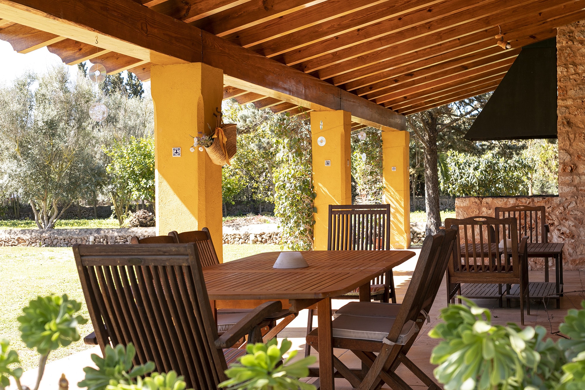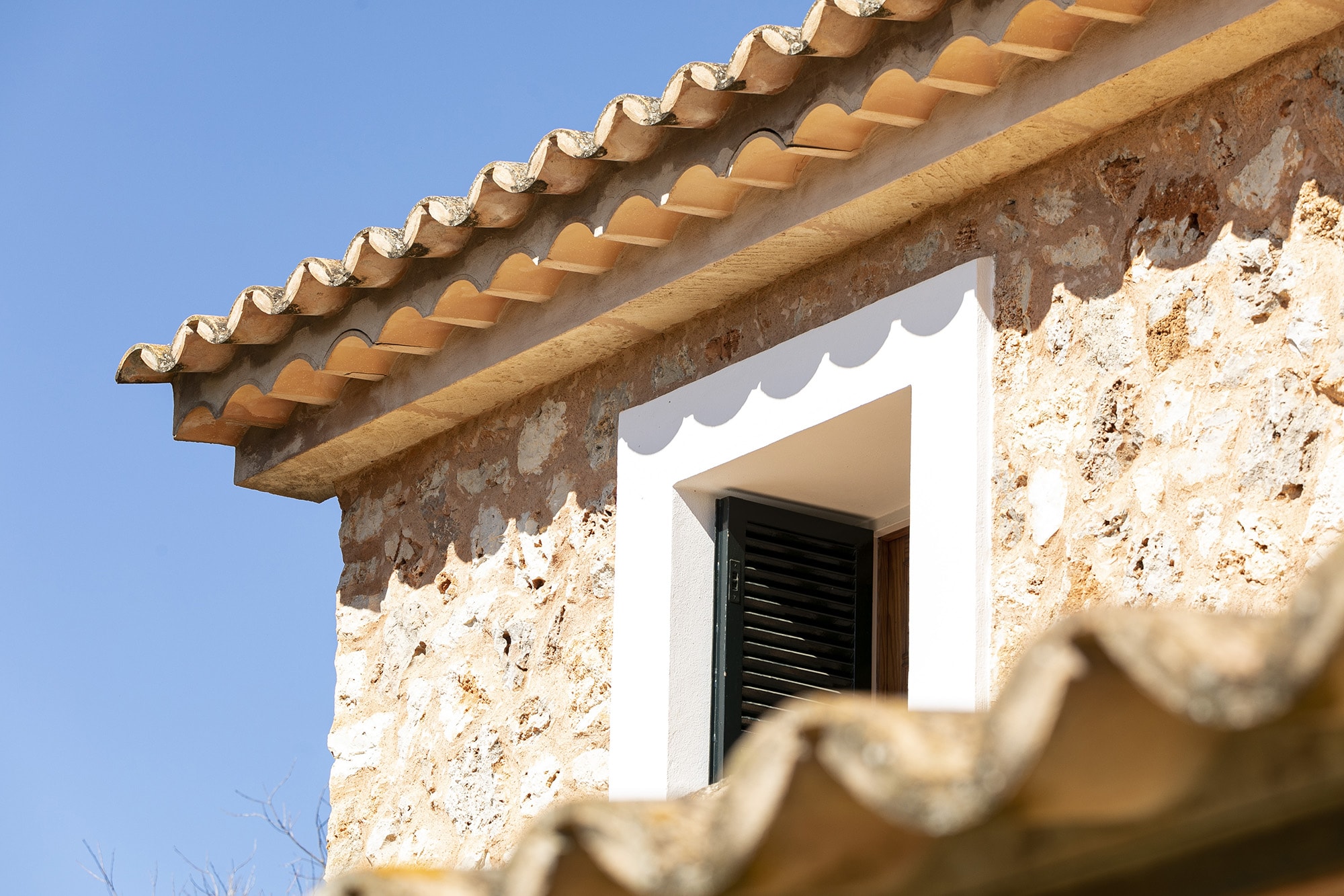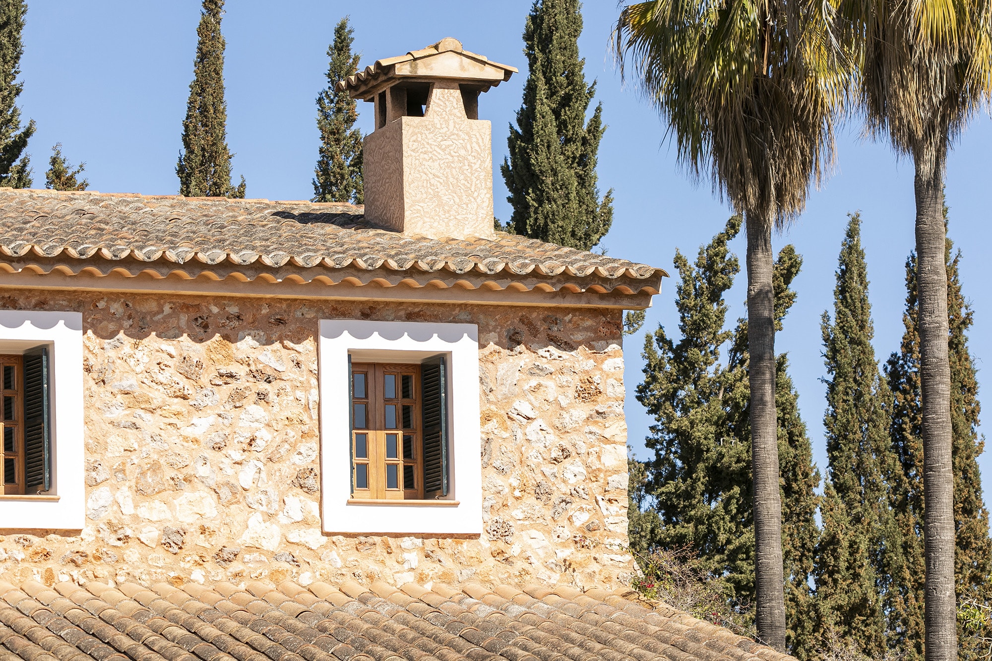 The house, built in 1987, has all the character of Majorcan rural buildings. The exterior architecture uses classical elements such as Arabic tiles, stone cladding, traditional ironwork and carriage-green wooden shutters. It has a small covered construction to park two vehicles, in an area with large ancient stone slabs.
