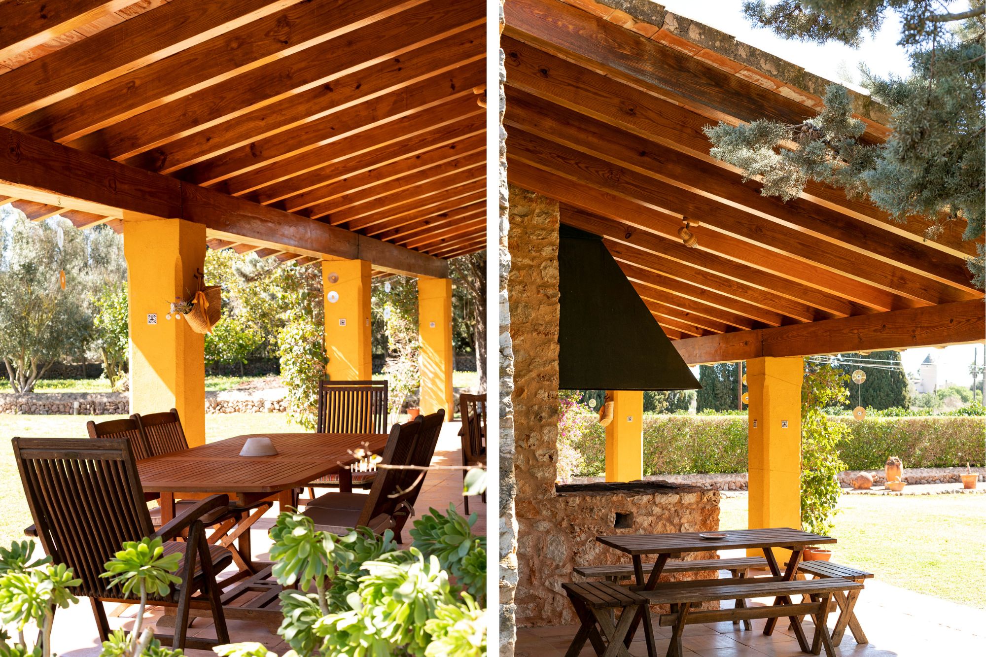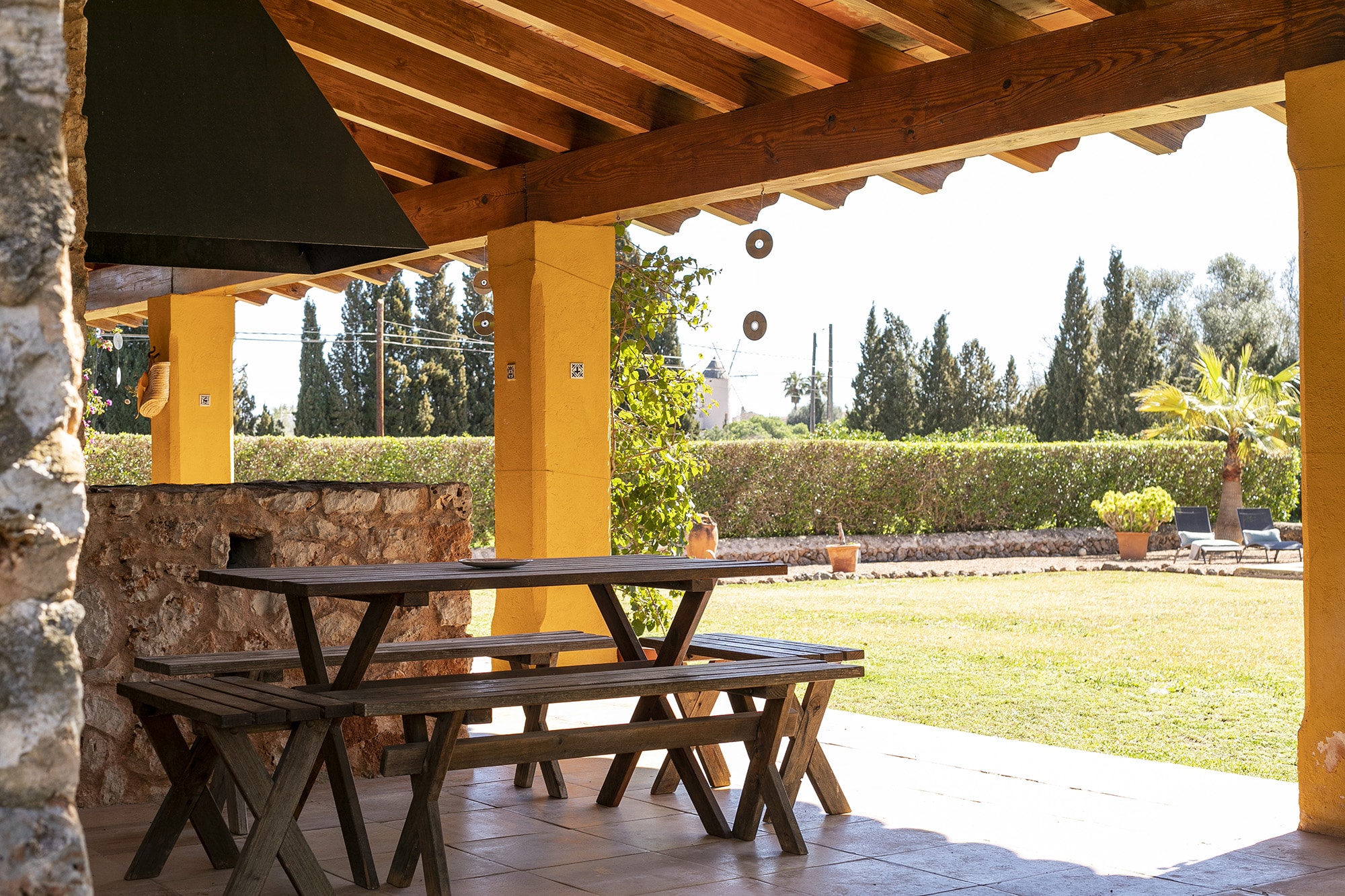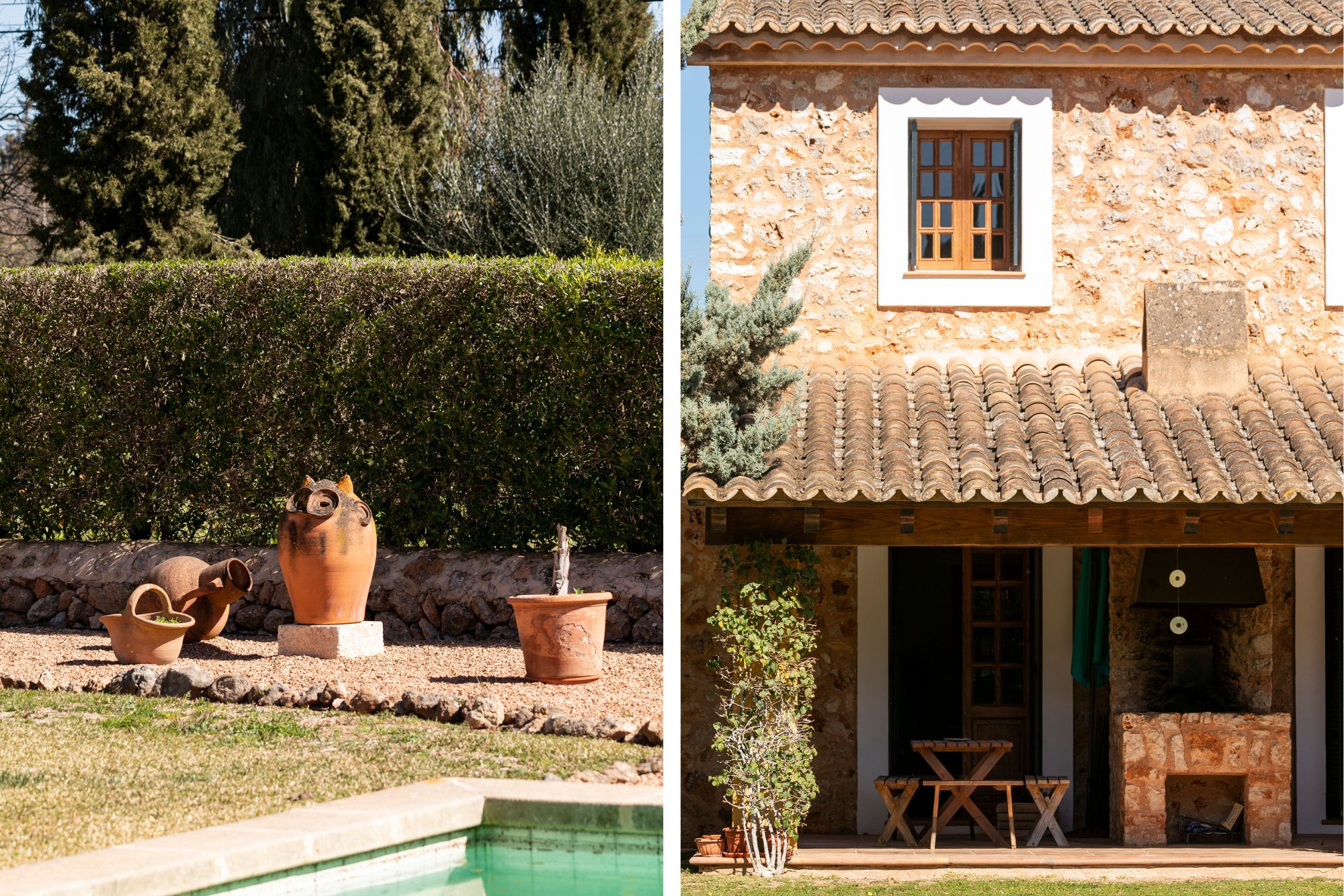 The house, built in 1987, has all the character of Majorcan rural buildings. The exterior architecture uses classical elements such as Arabic tiles, stone cladding, traditional ironwork and carriage-green wooden shutters. It has a small covered construction to park two vehicles, in an area with large ancient stone slabs.