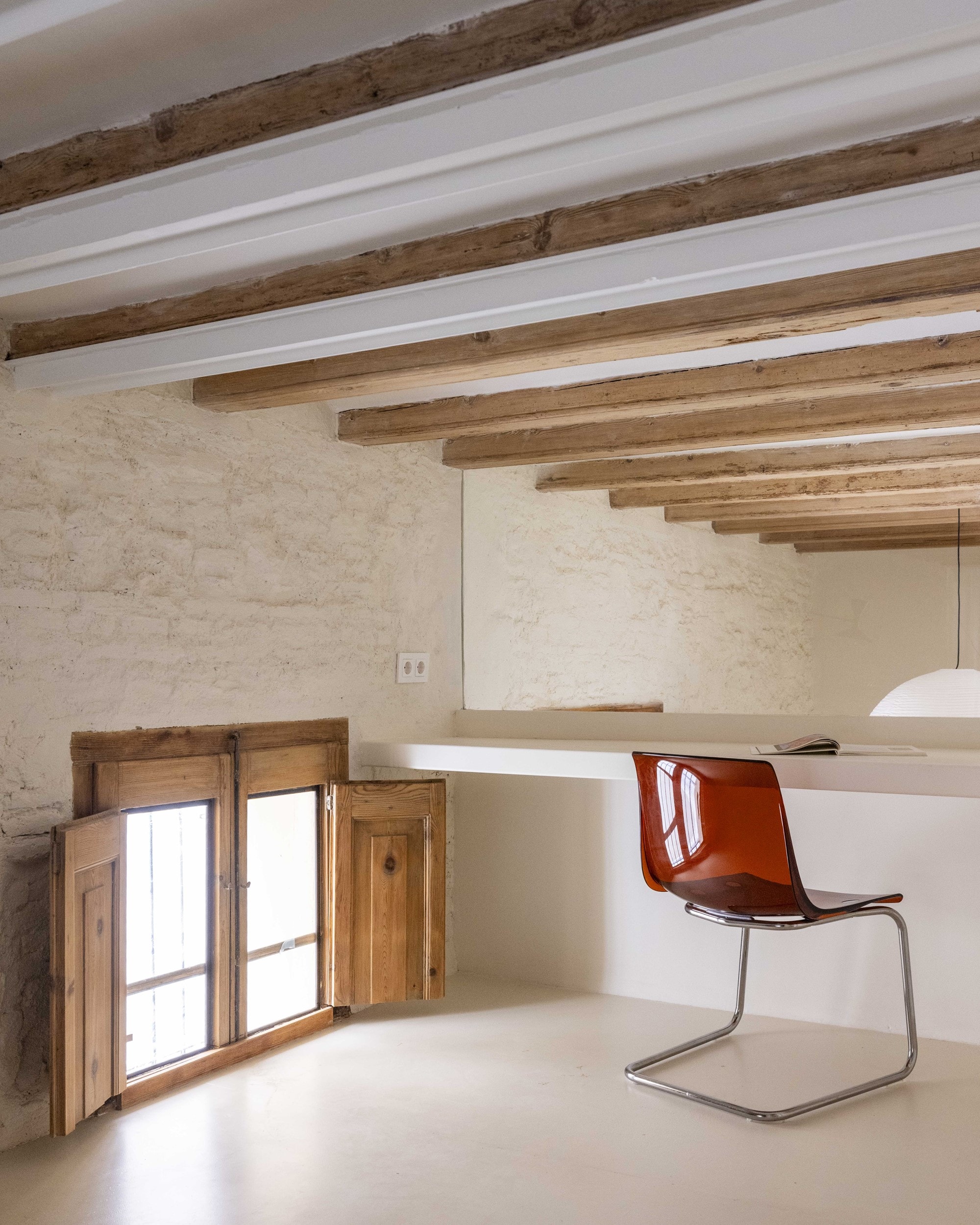 A versatile loft space overlooks the living area, ideal for a home office, creative studio, or small business setup—perfect for those who work from home.