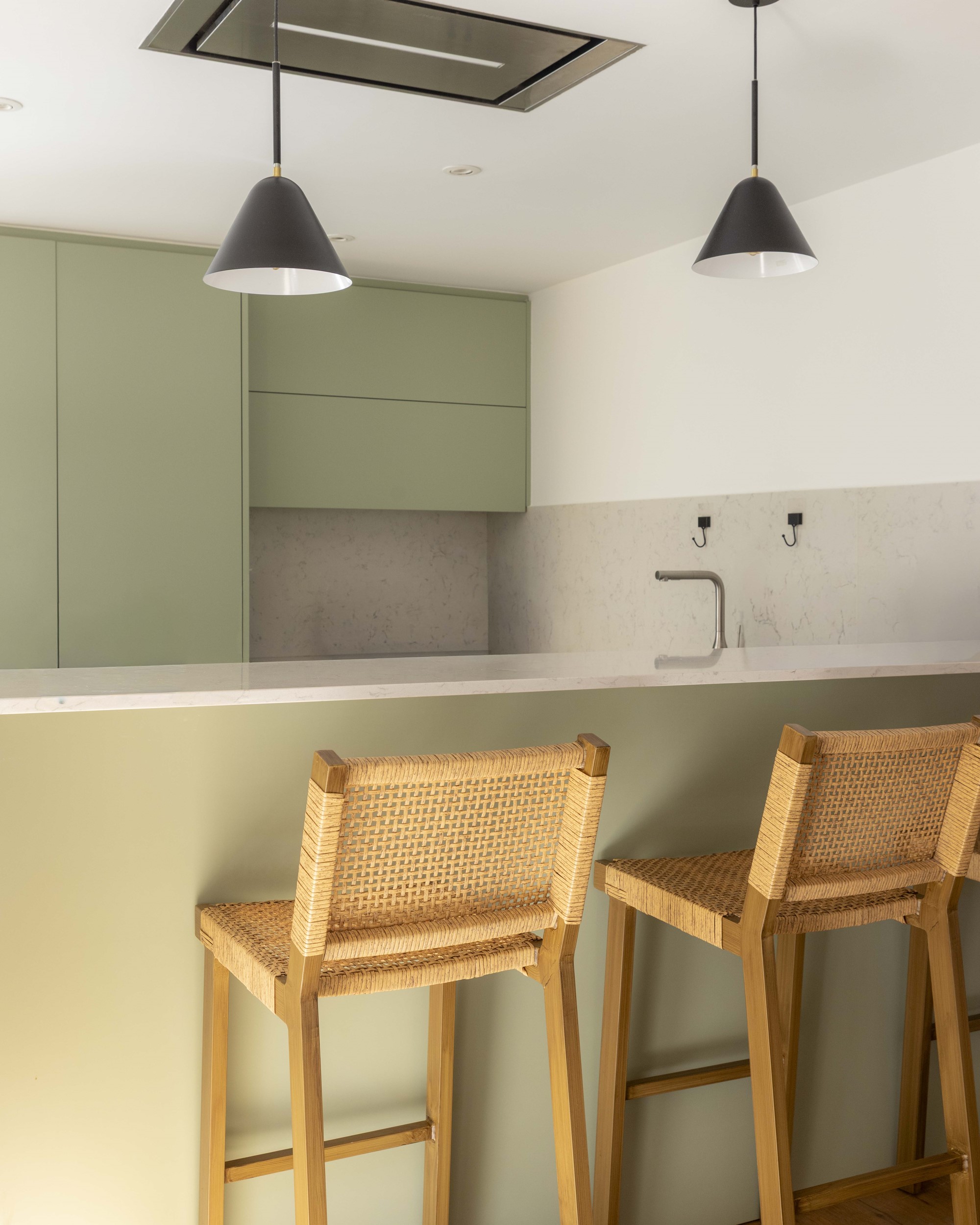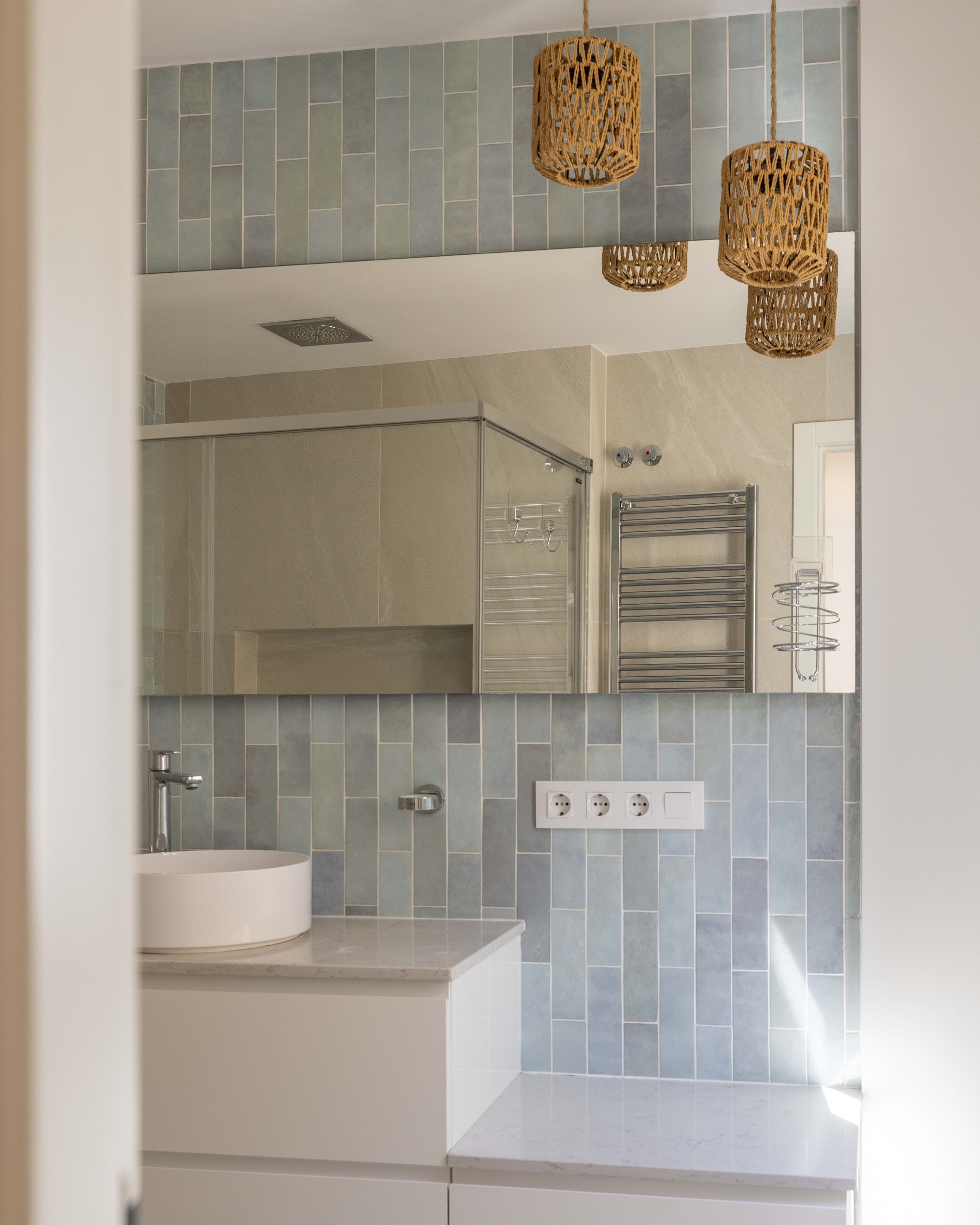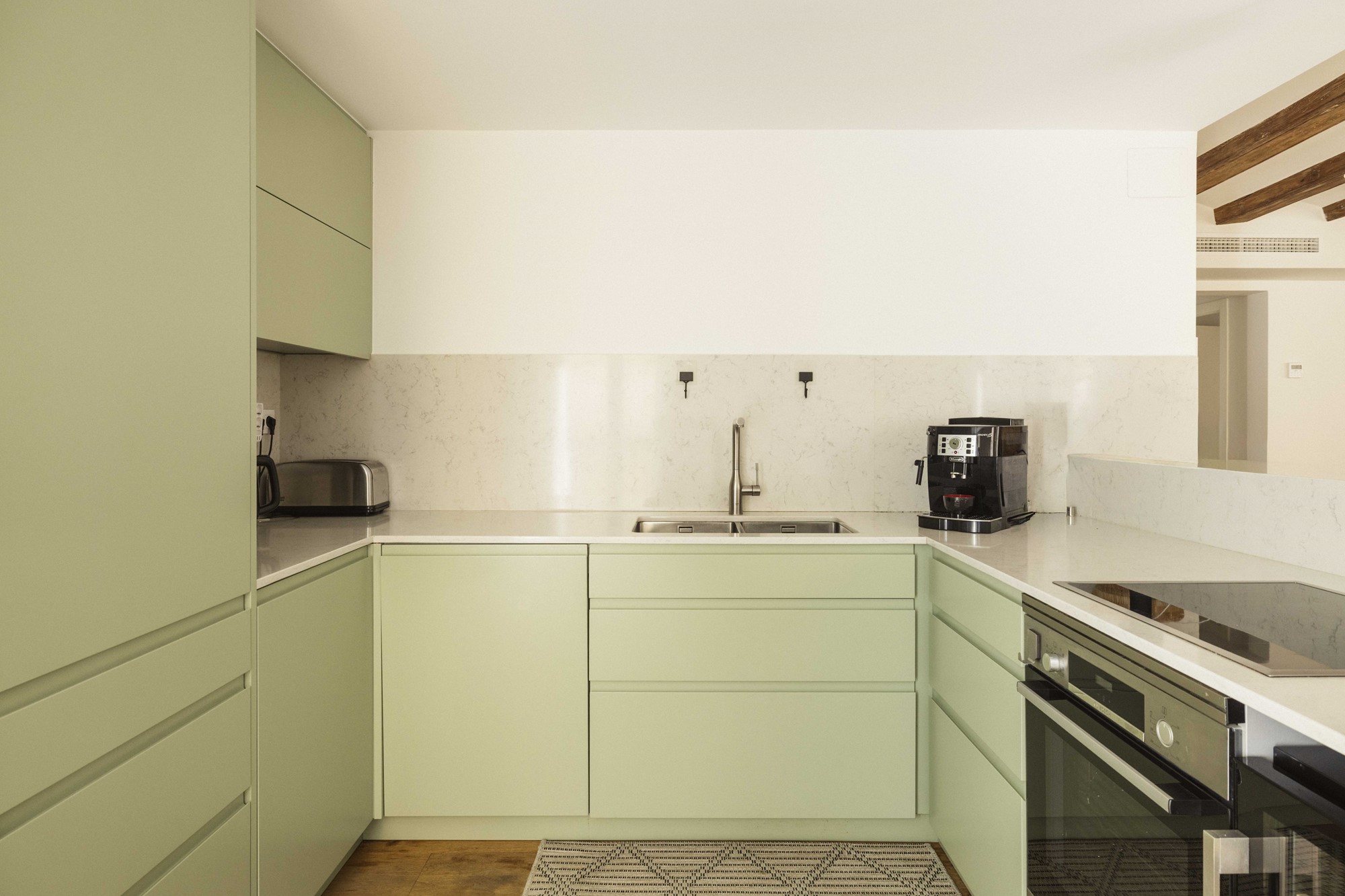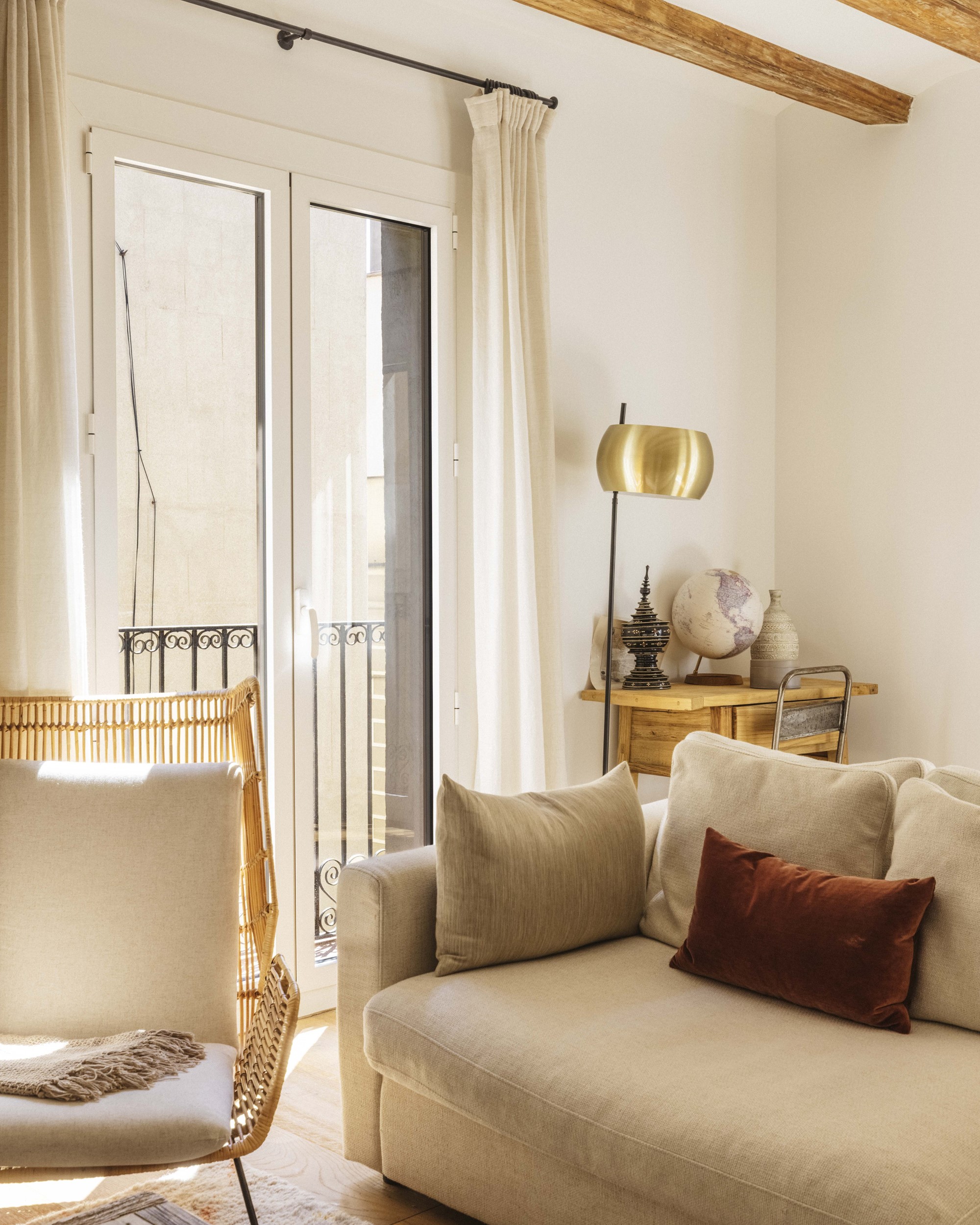 The night area comprises two generously sized suites, each with its own private bathroom, offering both comfort and privacy. The master suite also enjoys a charming balcony overlooking Carrer Rosic, with soft morning light.