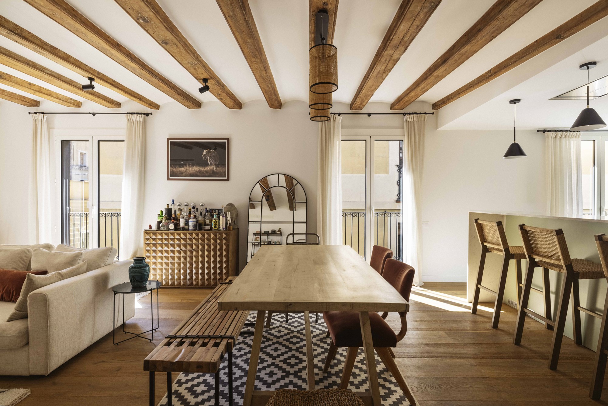 Set on one of El Born’s most sought-after streets, this unique penthouse blends historic character, abundant natural light, and a rare outdoor lifestyle in the city centre.