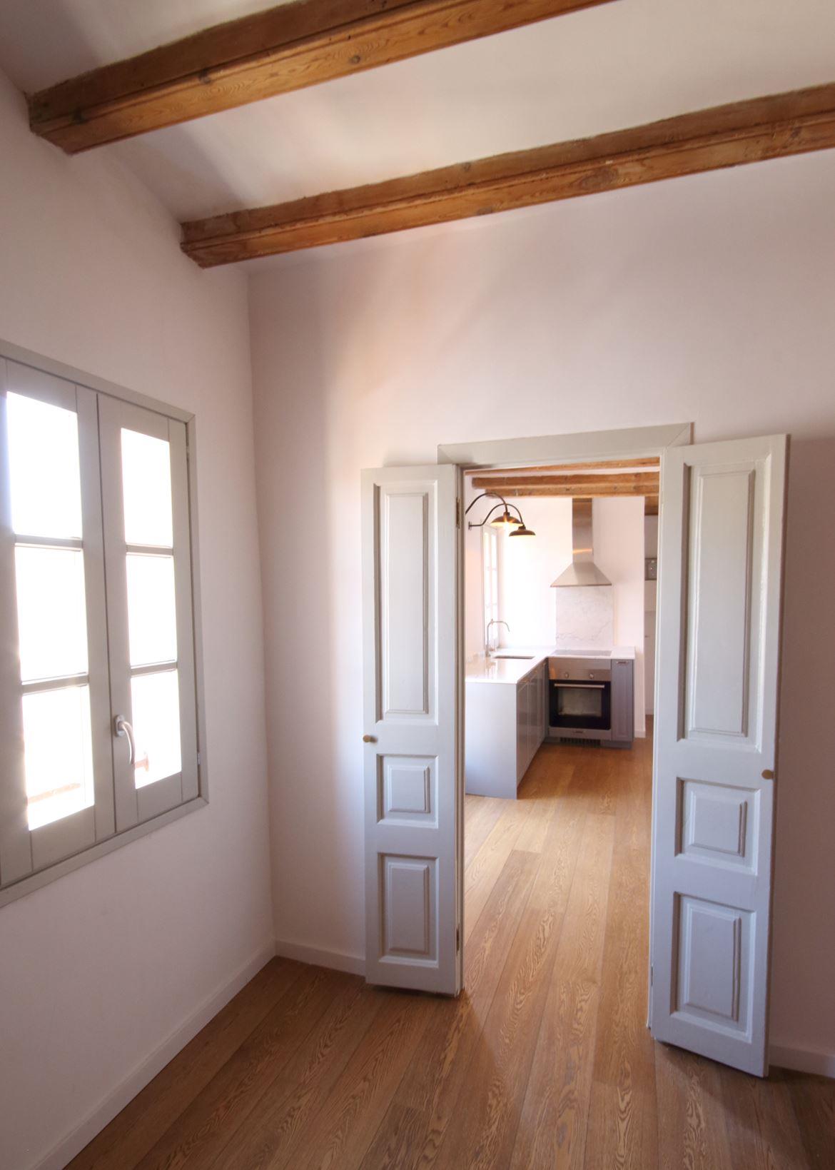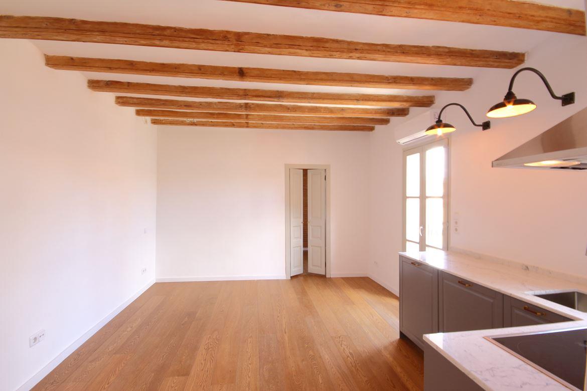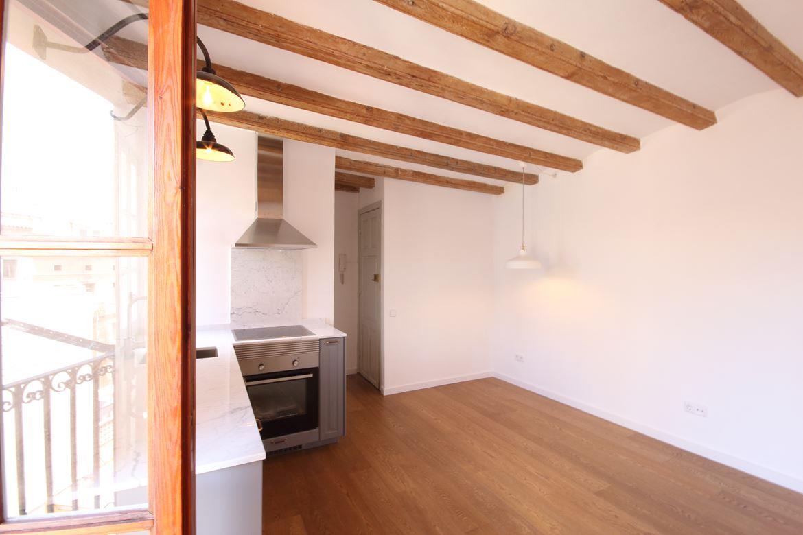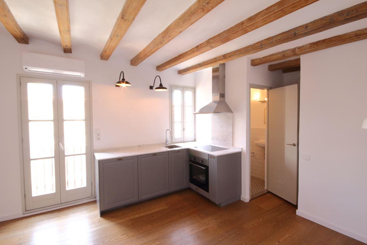 Well-planned and bright apartment next to the beach in Barceloneta. Living room with integrated kitchen and separate bedroom.