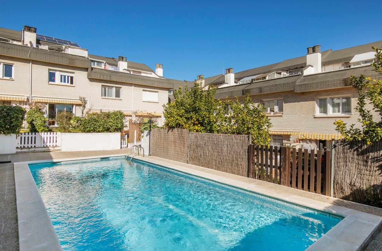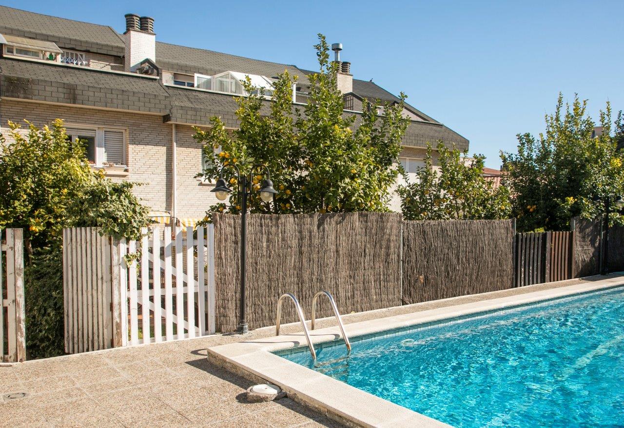 Central and quiet terraced house. 4 bedrooms, communal salt water pool and short walk to the old town and th FGC.