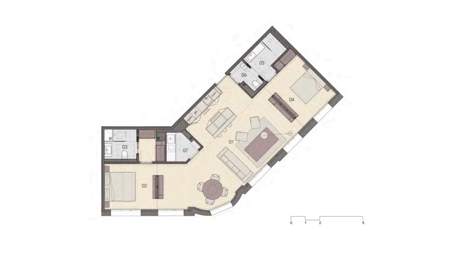 Apartamentos de lujo con diferentes caracteres y tamaños, de 65 a 225 m2. El edificio ofrece un servicio único, "Luxury Service Apartment" que representa un estilo de vida donde el hogar y los servicios de lujo siempre están conectados.