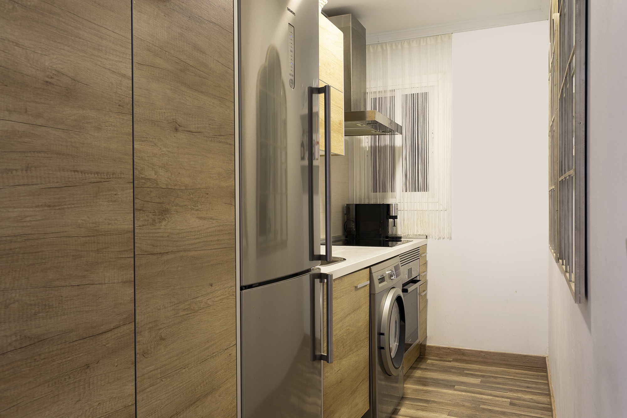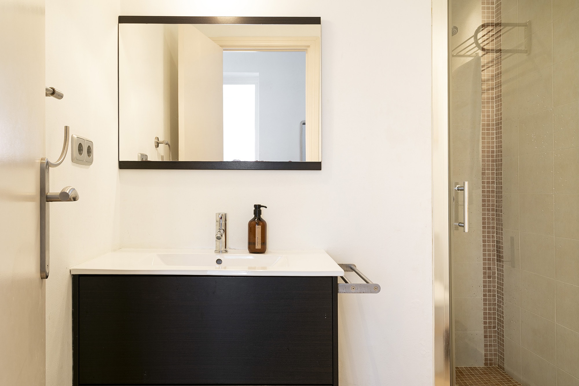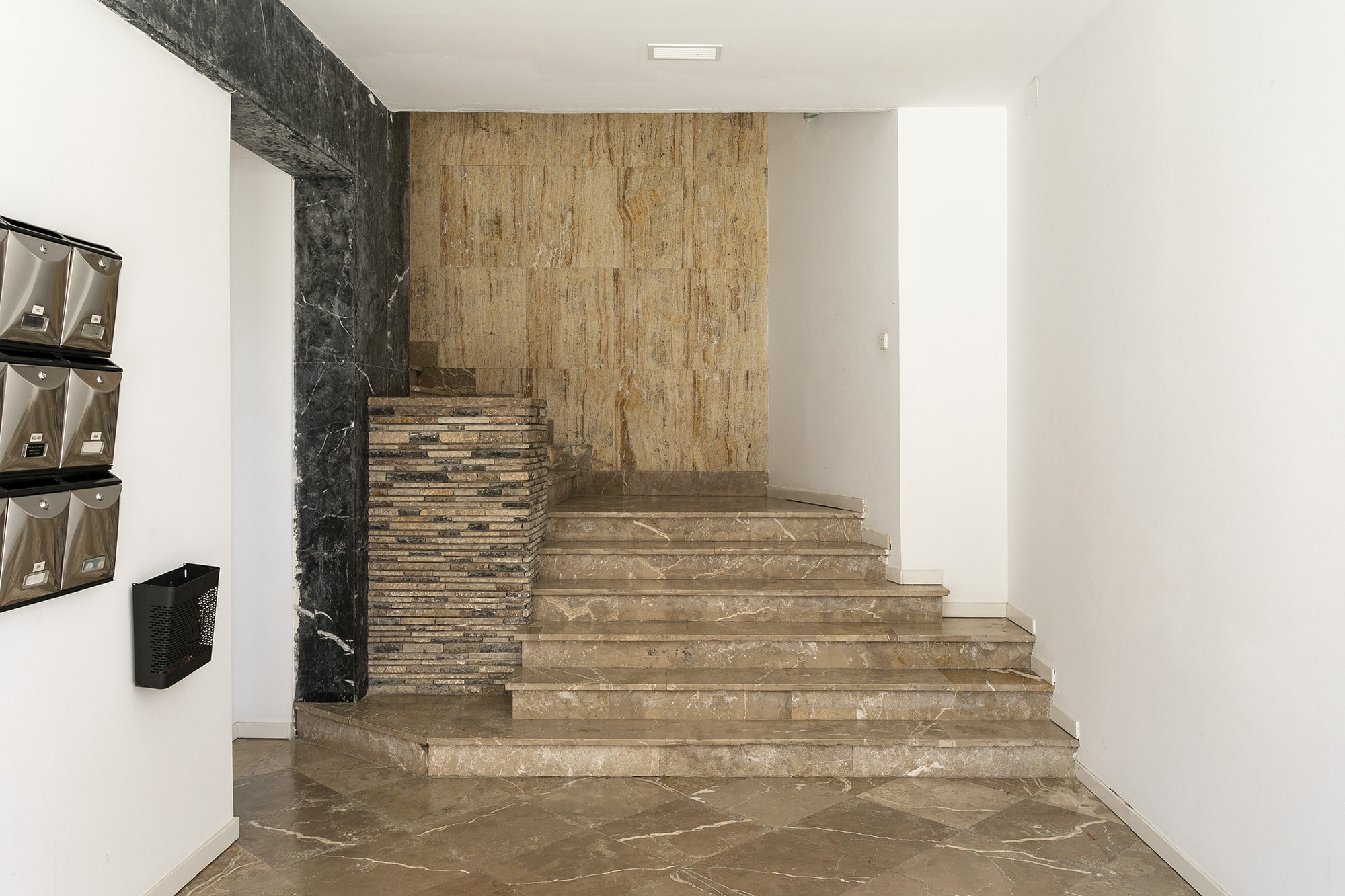 The 82 m2 apartment offers 2 big bedrooms with double beds and built-in wardrobes and direct access to the terrace. It has one bathroom with a shower and a practical kitchen just next to the entrance and the living room.