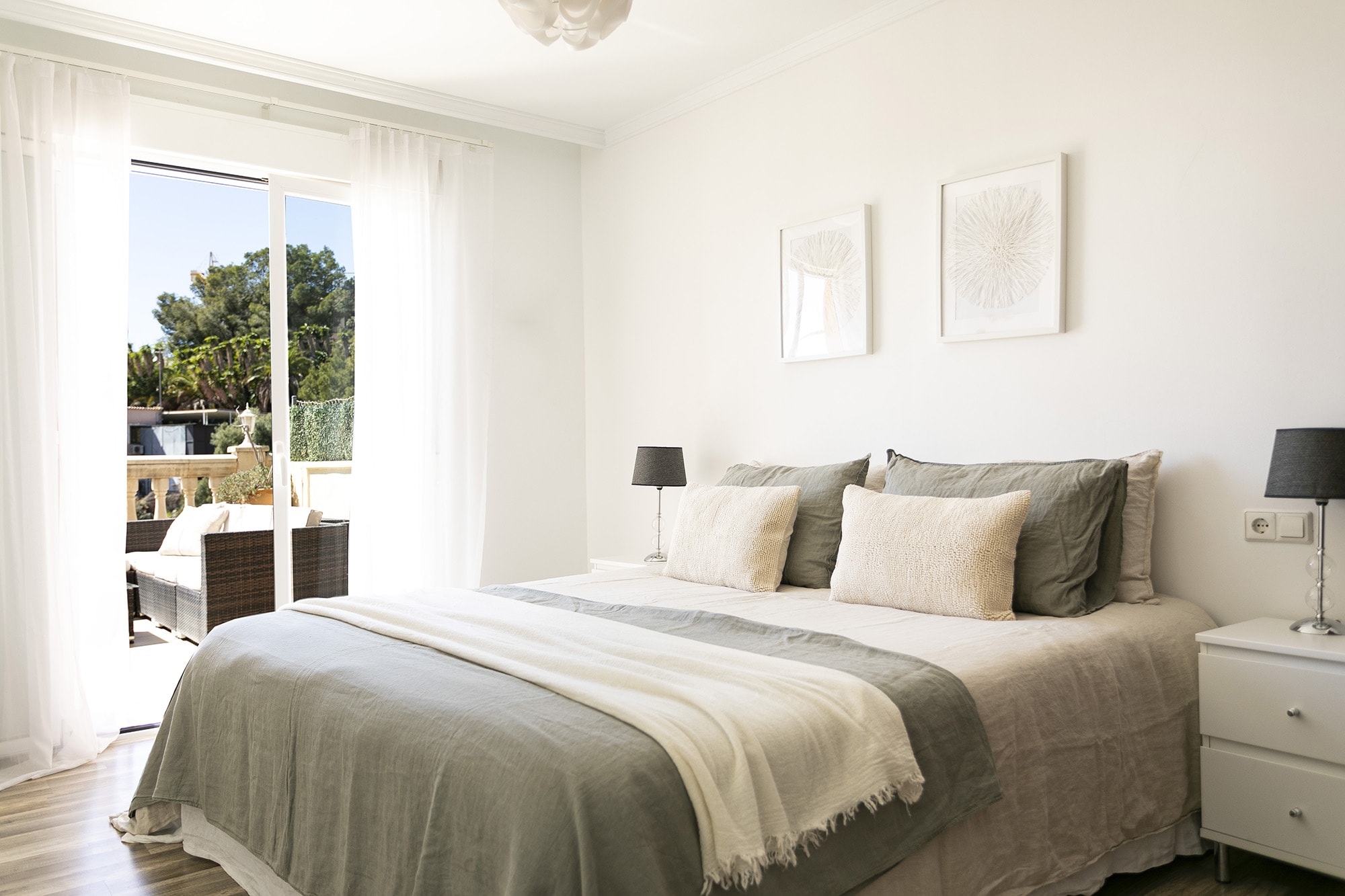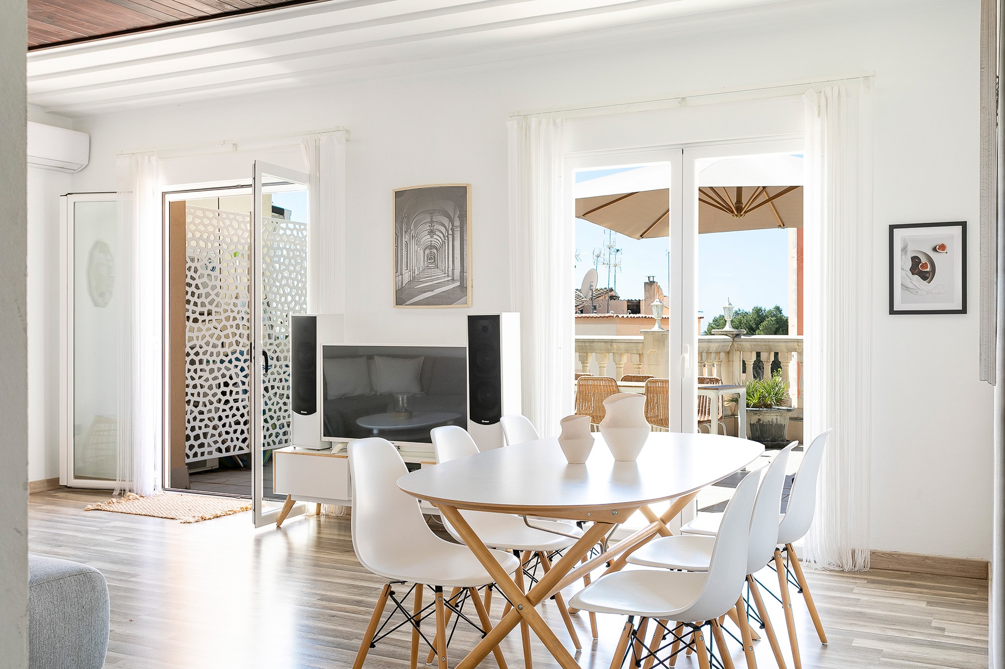 But the star of the show is definitely the 69m2 terrace where you would spend most of your time. It has great space for a big dining table, sunbeds, and a lounge area for those late-night cocktails. From the terrace, you can see all the way down to the sea and down the hills of the area. It is a quiet neighborhood but within walking distance of stores and restaurants.
