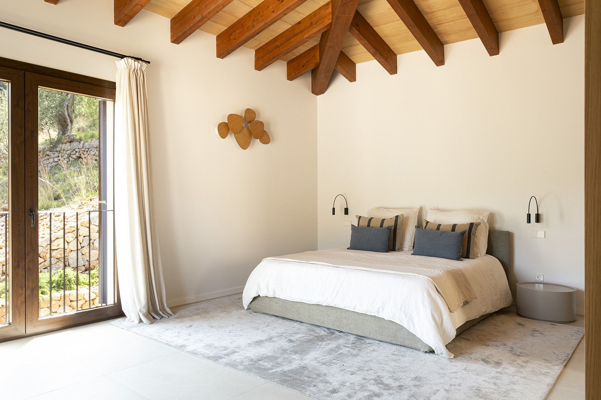 Respecting the structure of typical Mallorcan estates with an interior patio, the house has approximately 500m2 built distributed over 2 floors. Its stately entrance leads to the spacious living-dining room furnished to detail, a new fully equipped kitchen, 3 en-suite bedrooms and a toilet. The entire ground floor surrounds the characteristic patio that gives personality to the house and is covered with exposed wooden beams. On the first floor is the main room of more than 50m2 with a very bright en-suite bathroom, dressing room and a space dedicated to rest. It is worth noting that the 4 rooms has more than 30 square meters each with its private bathroom. Through a glass door located in the corridor you can access the incredible pool located on the roof with unobstructed views of the Serra de la Tramuntana mountain.