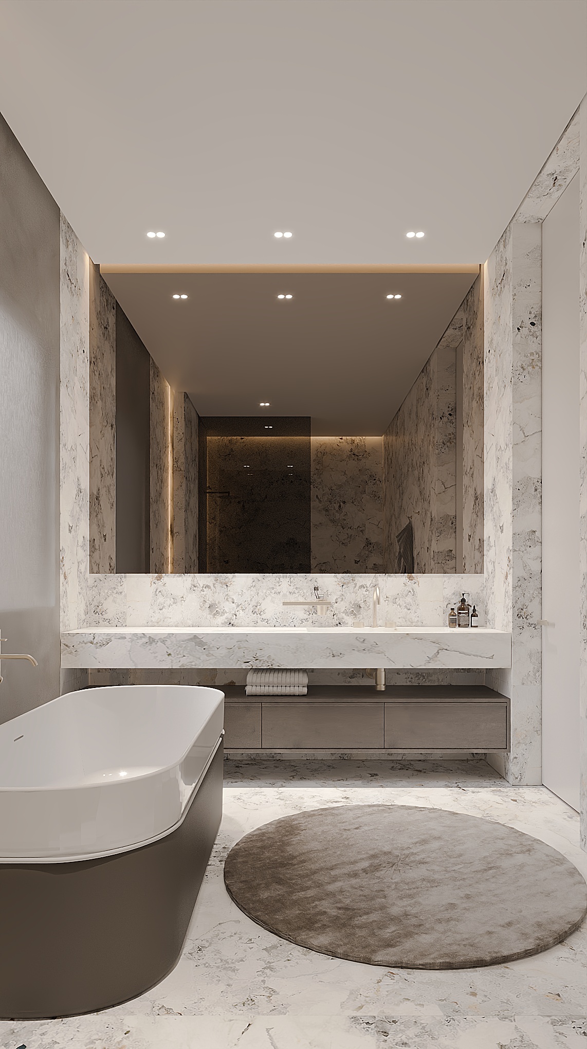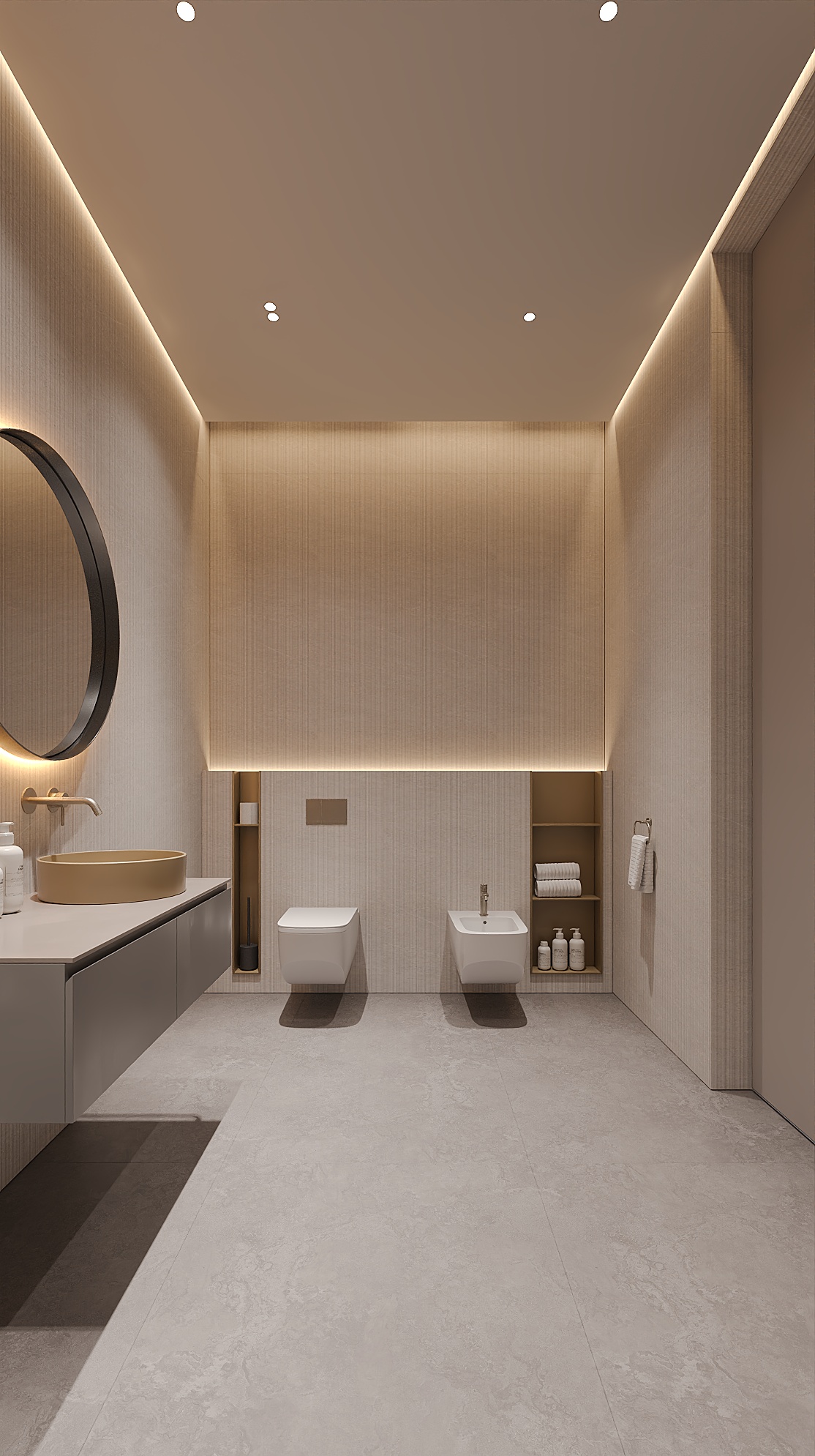 It includes five bedrooms, four of which are exterior, and four bathrooms. Built-in wardrobes provide generous storage space, while heating and air conditioning ensure year-round comfort.