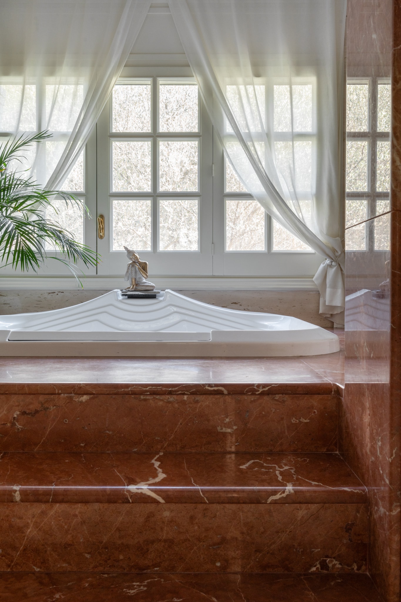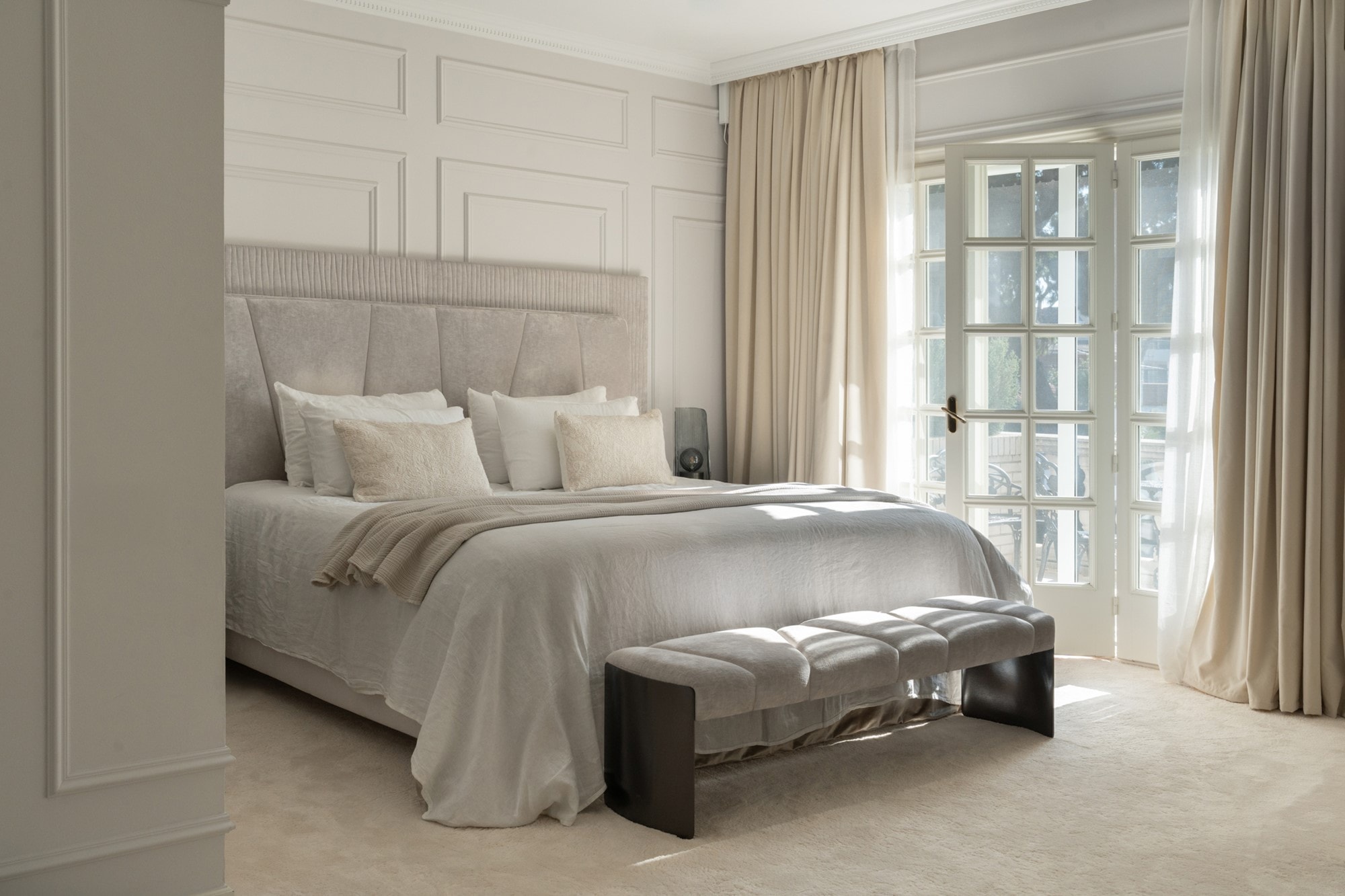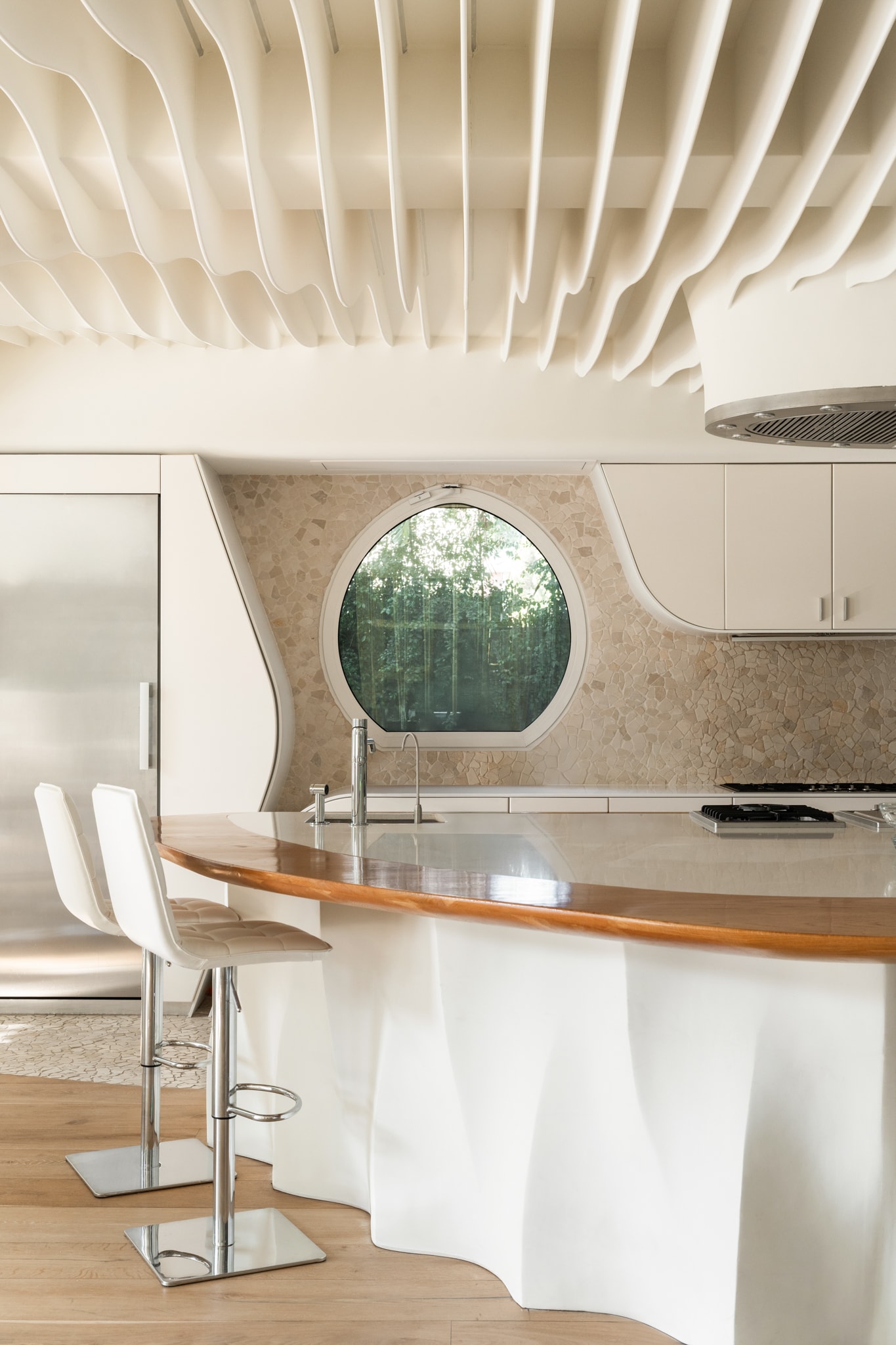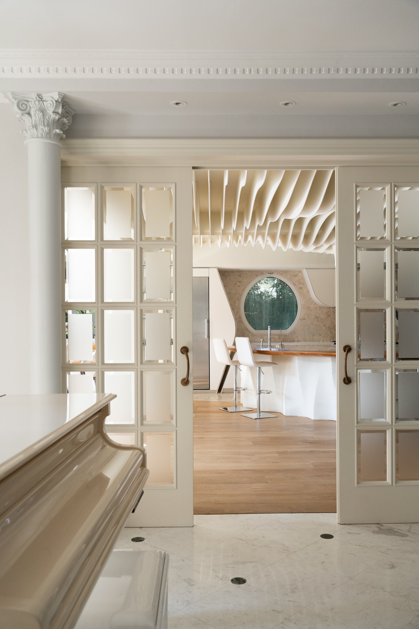 Inside, the home boasts spacious and sunlit interiors, with large floor-to-ceiling windows that seamlessly connect indoor and outdoor living. The spectacular designer kitchen, fully equipped with high-end appliances, includes an elegant glass-enclosed wine cellar.