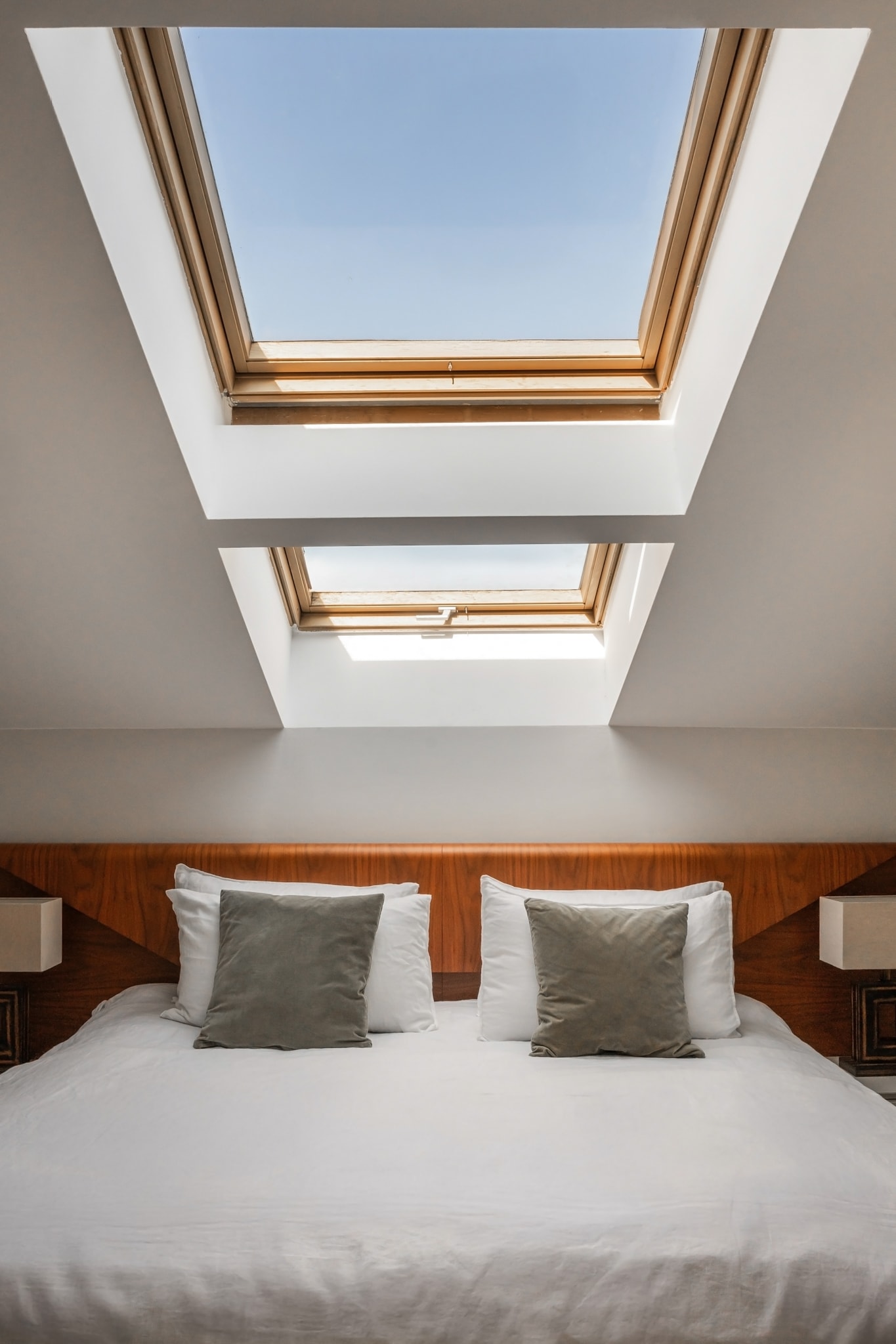 The property offers multiple en-suite bedrooms, including two luxurious suites with private terraces overlooking the sea. A top-floor loft-style living area, bathed in natural light from skylights, provides a unique space for relaxation.