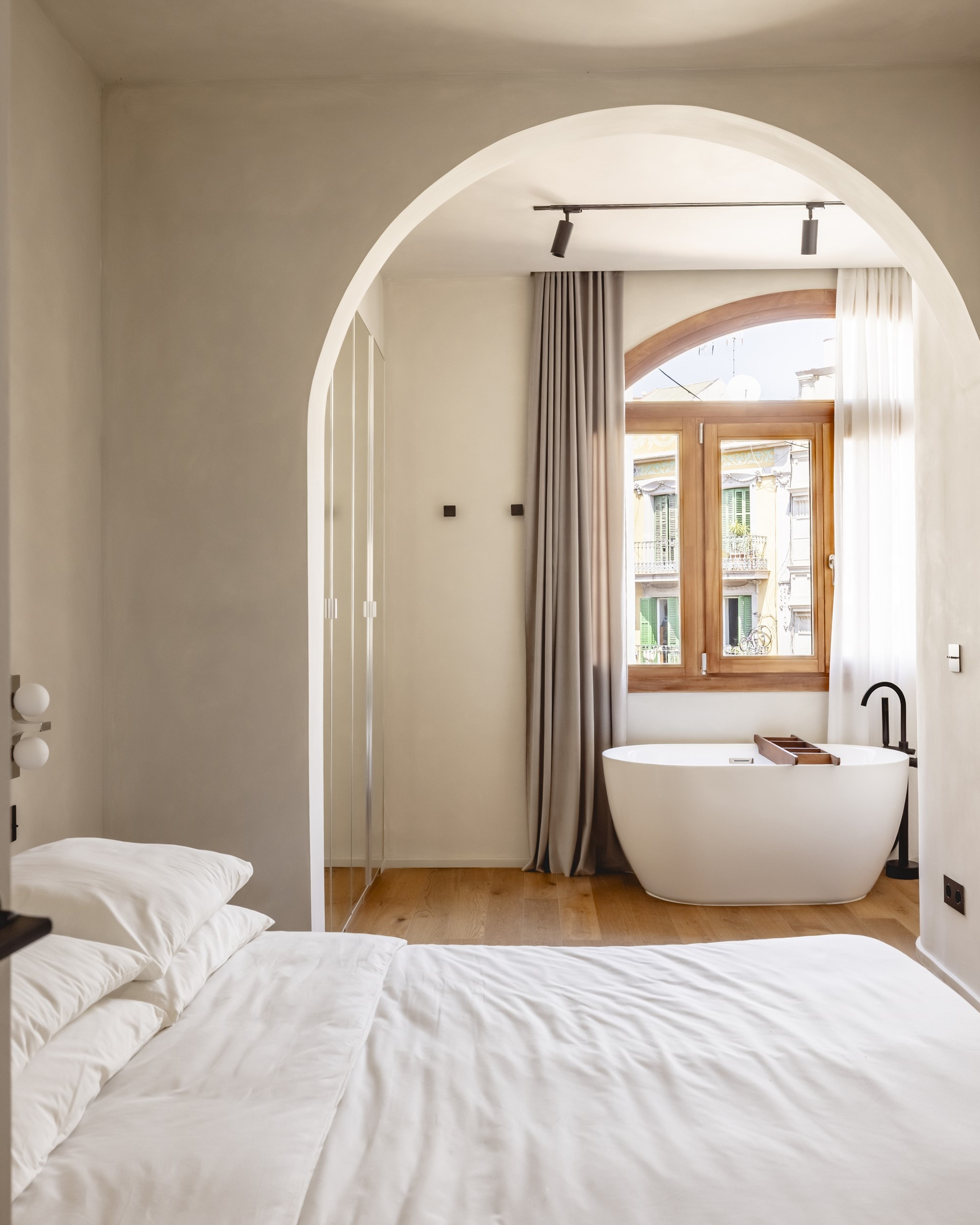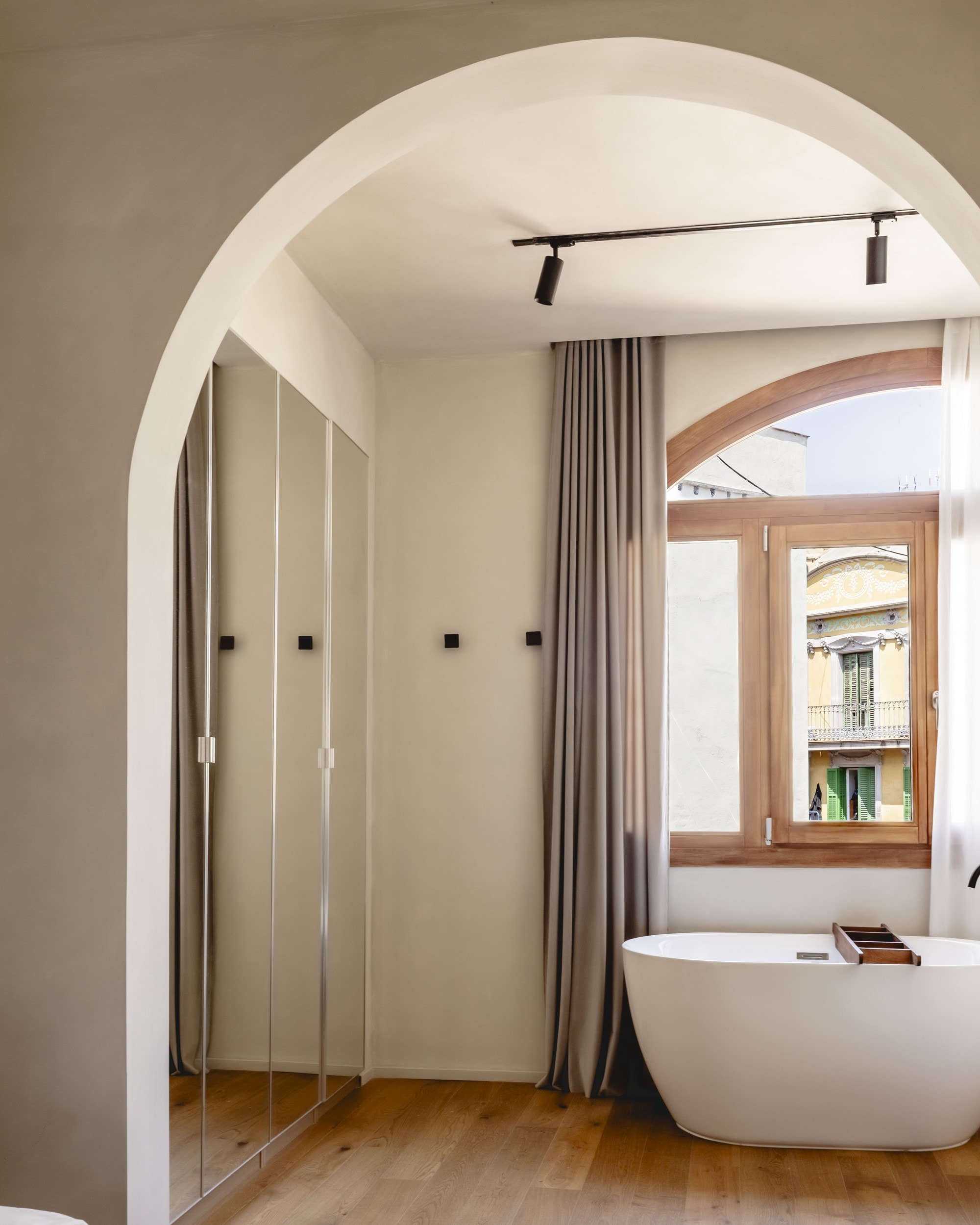 The layout is ideal, with well-thought-out spaces that are utilized to the fullest. The generously sized bedroom features built-in wardrobes and a bathtub with views. The apartment stands out for its cross-ventilation, light, and air, renovated and designed with a touch of distinction and originality.