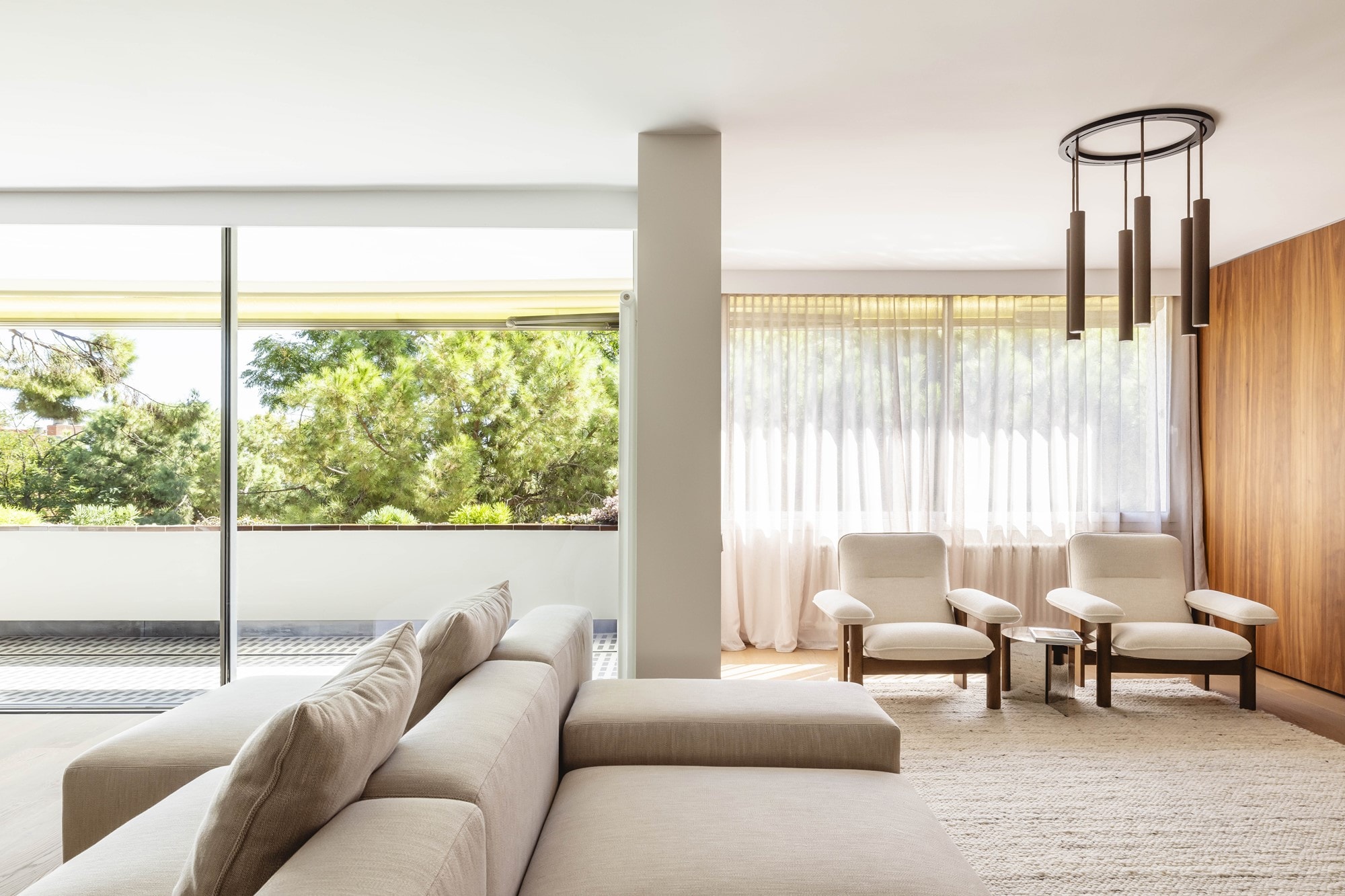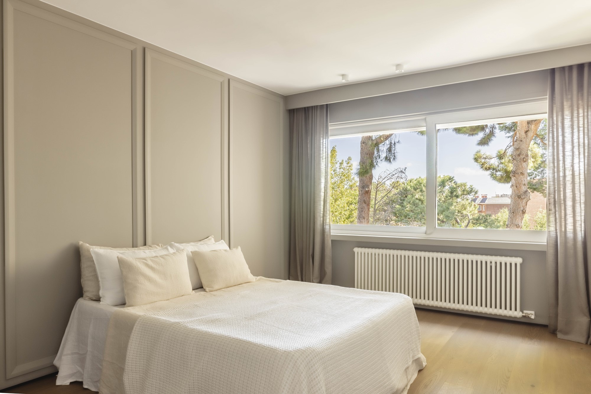 Renovated apartment for sale in Pedralbes, one of Barcelona’s most sought-after and exclusive neighborhoods. Situated on Plaça dels Jardins de Tòquio, next to Avinguda de Pedralbes, this exceptional 280 m² residence offers a serene green oasis in the heart of the city. Generous in space and filled with natural light, the apartment features large windows throughout, framing views of lush greenery and trees.