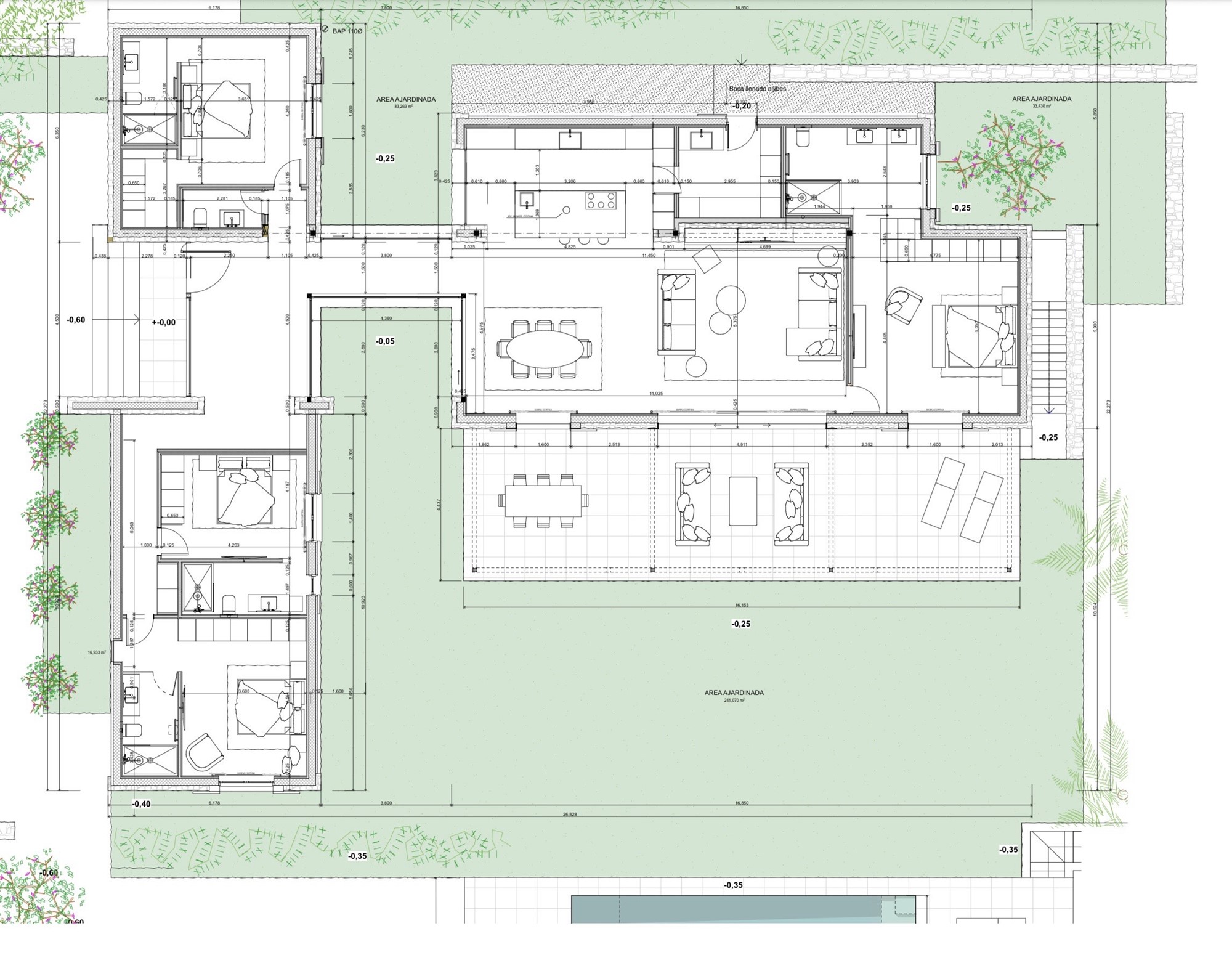 The villa is equipped with advanced KNX and Airzone home automation systems, which control lighting, underfloor heating, and ducted air conditioning, guaranteeing year-round comfort and modern efficiency.