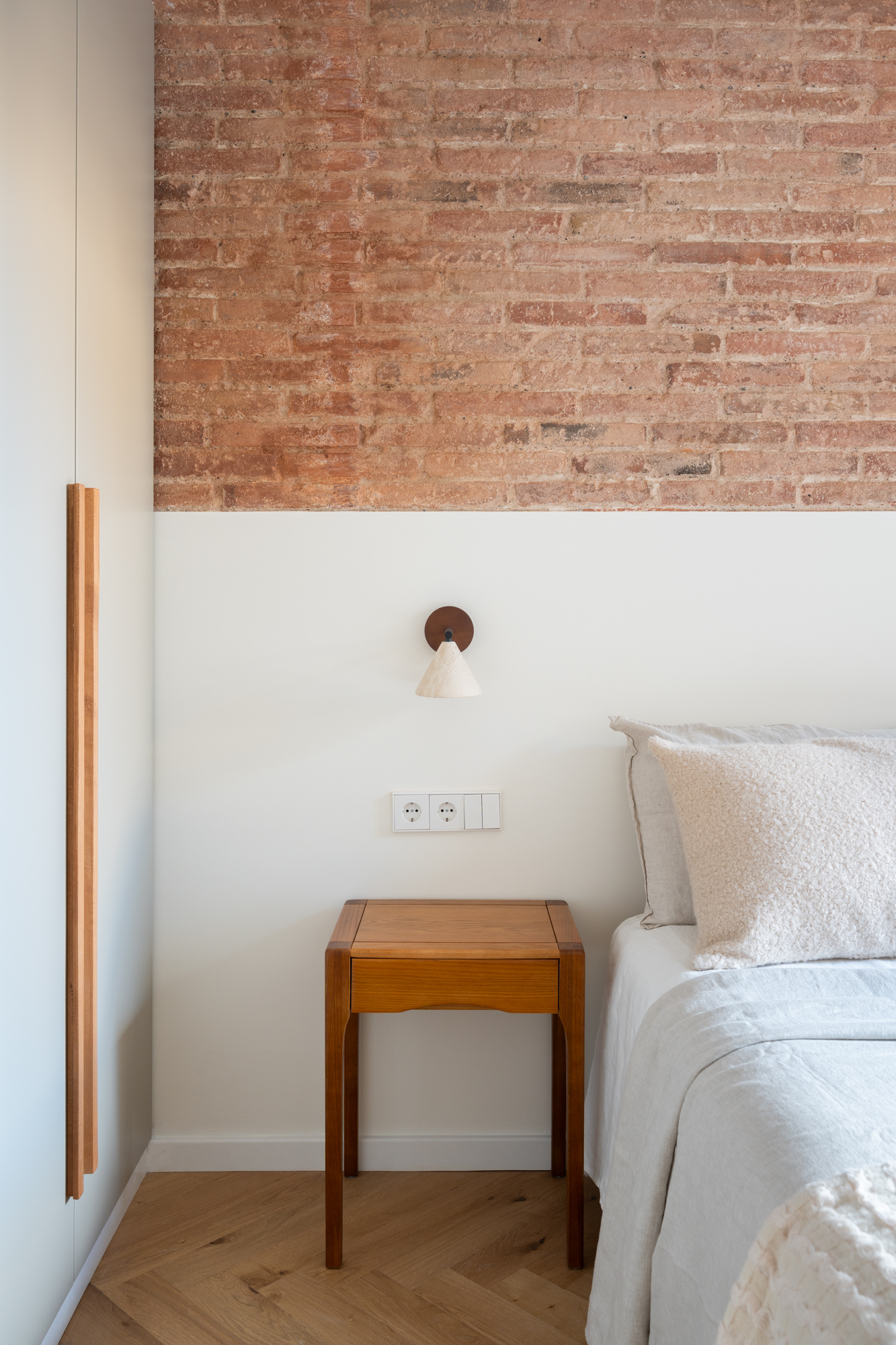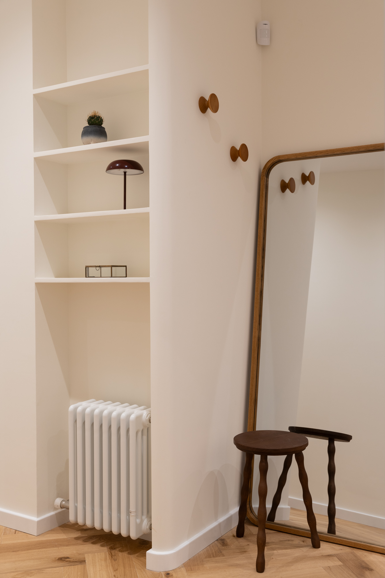 The apartment features three bedrooms, all designed to comfortably accommodate double beds, and two bathrooms, one of them en-suite. Every space has been thoughtfully planned to balance functionality, elegance, and warmth.