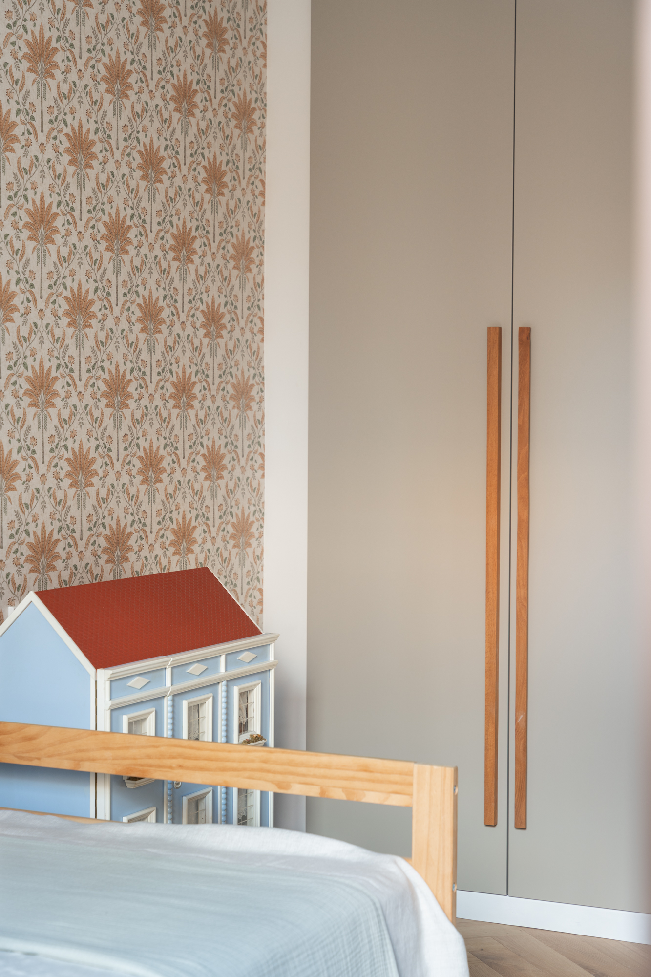 High-quality finishes define the interiors, including oak wood flooring, seamless transitions between bathrooms and living areas, Formani designer handles, and distinctive aromatic floral wallpaper that adds a subtle, unique character to the home.