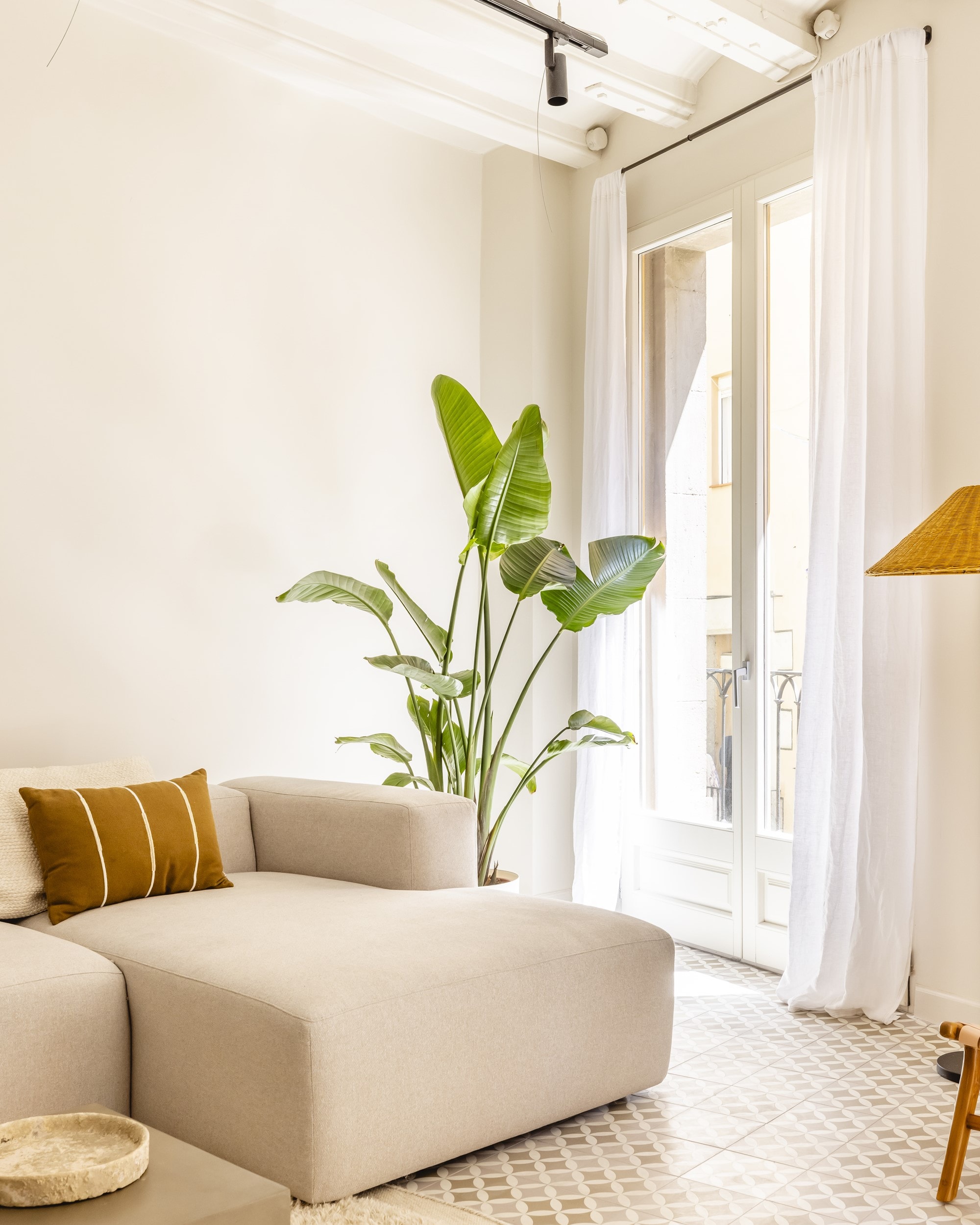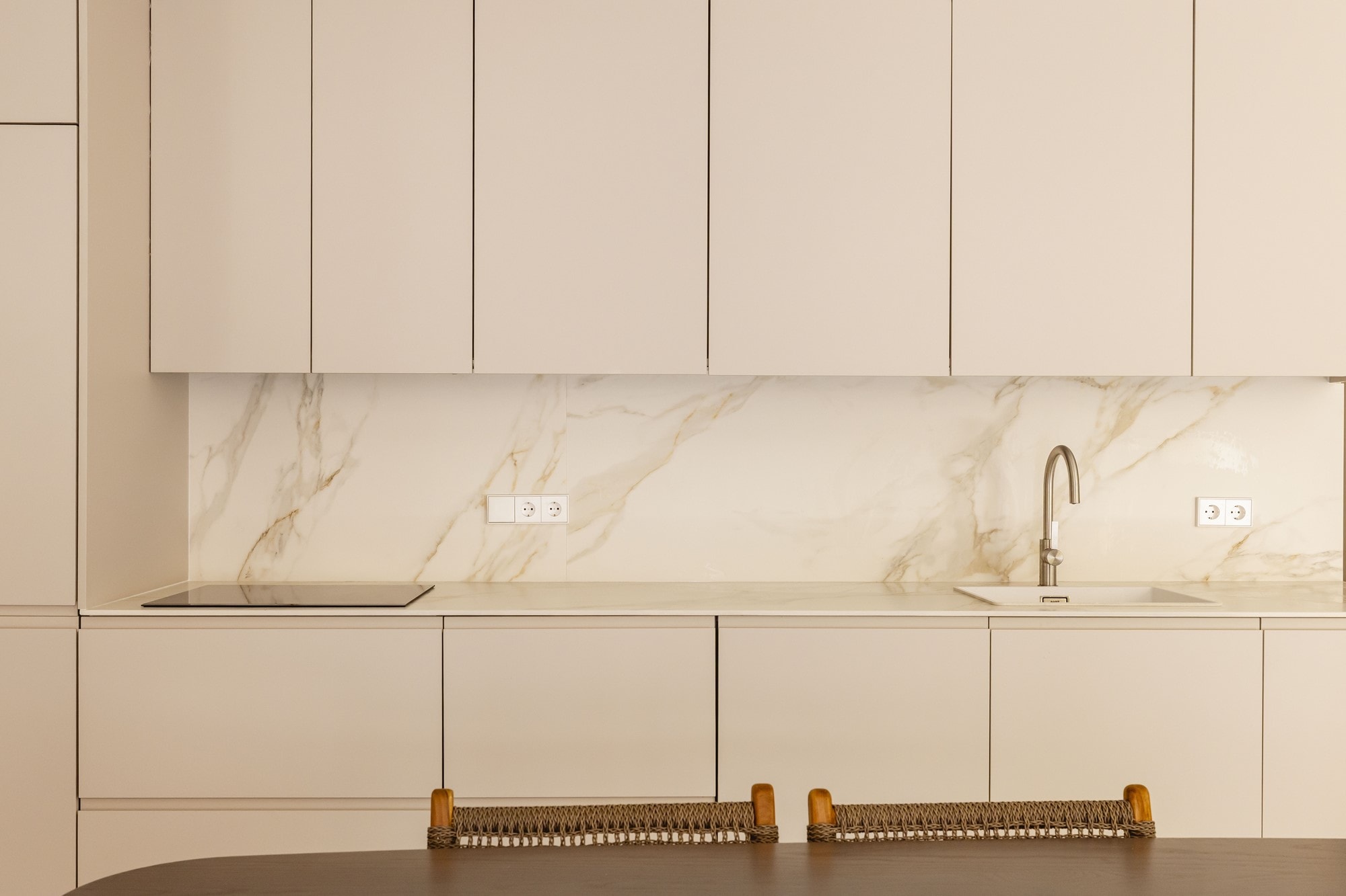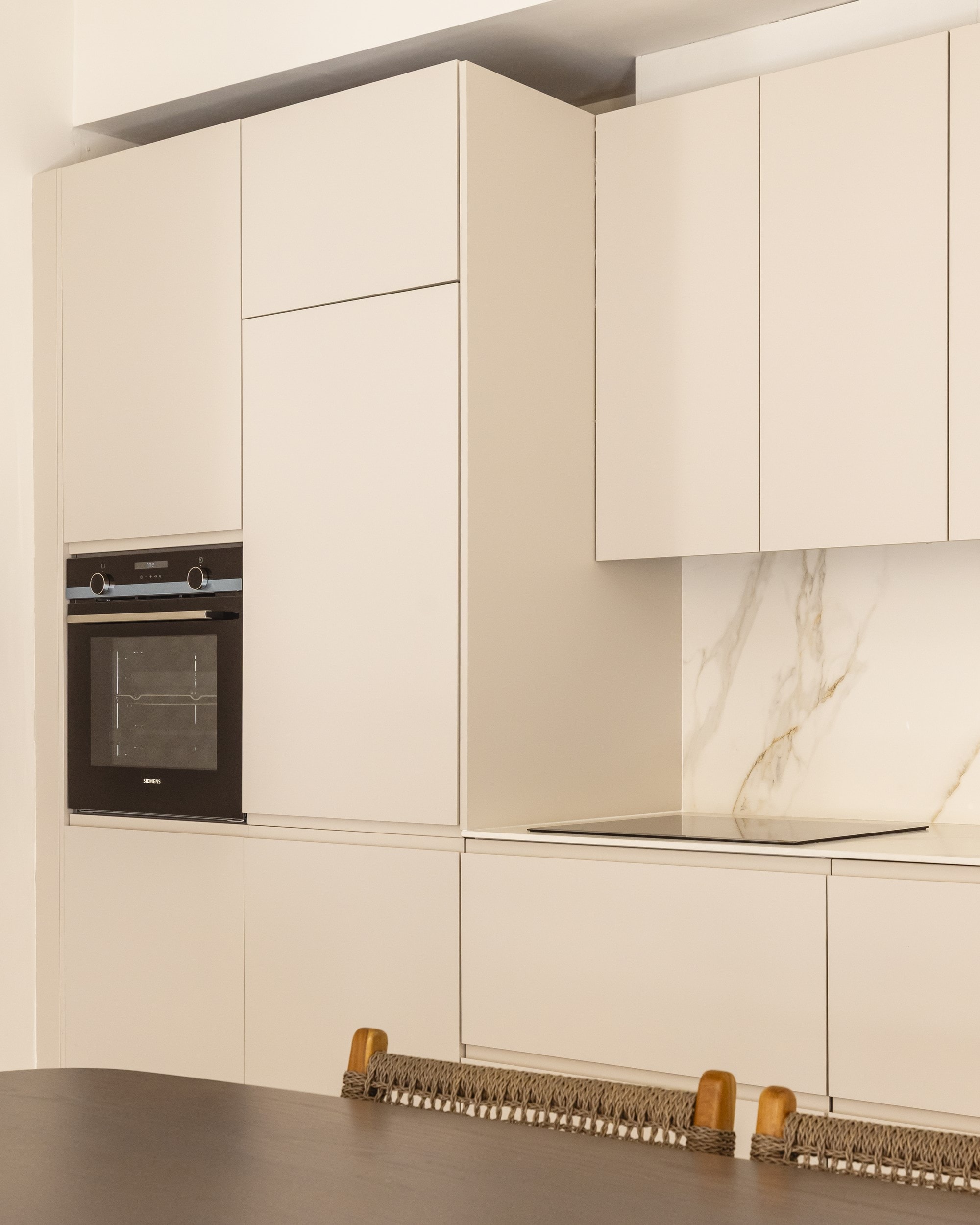 Flooded with natural light throughout the day, the spacious living room opens onto one of three private balconies. The modern kitchen is sleek and functional, perfect for home cooking or entertaining. Both bathrooms has elegant microcement, adding a contemporary edge to the classic charm.