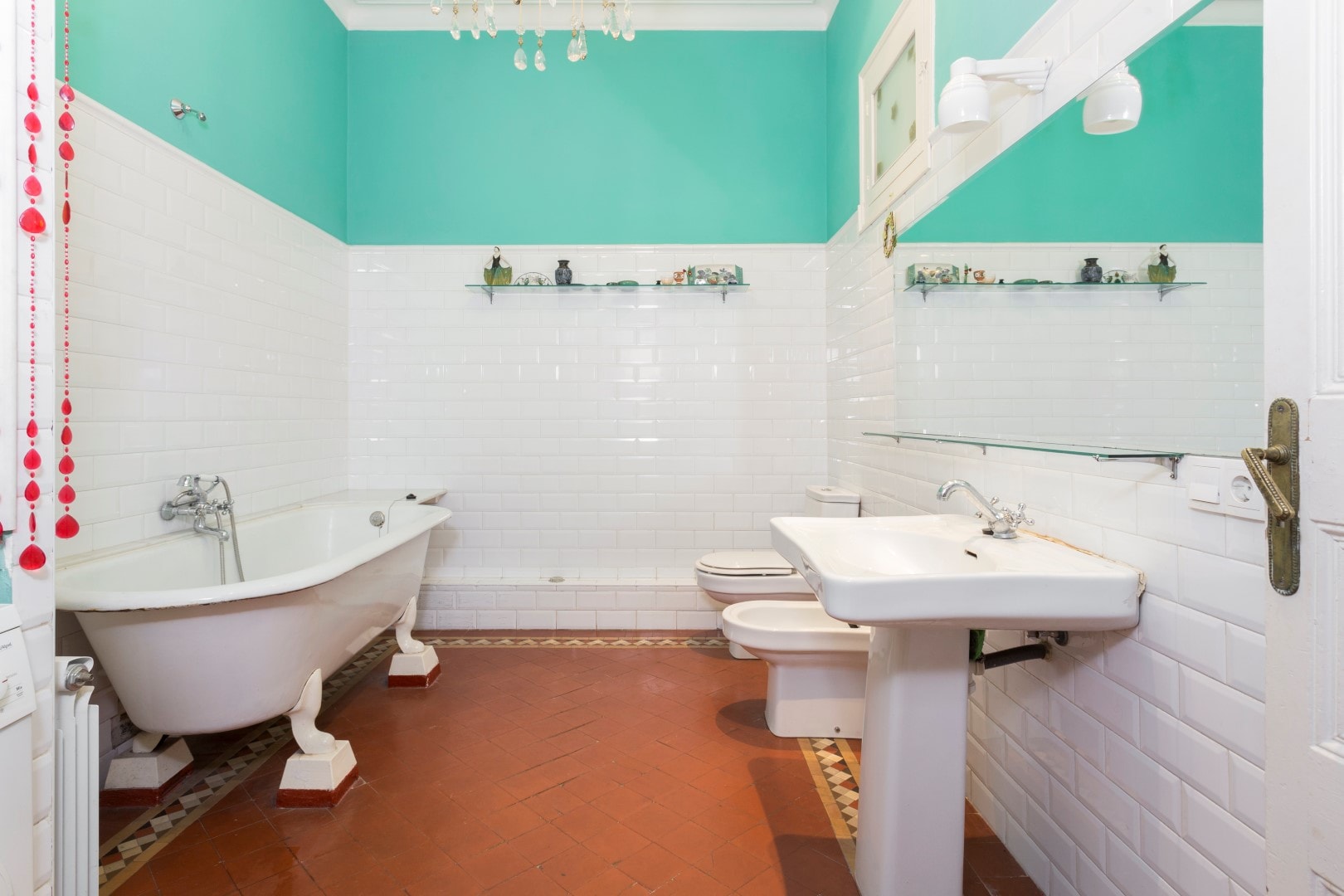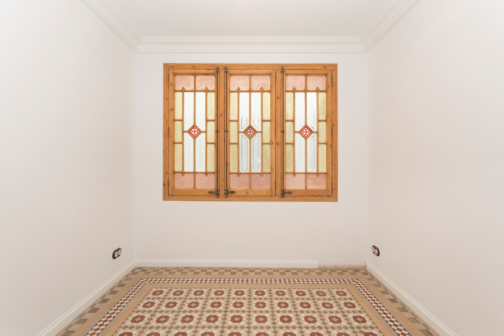 The apartment, with a surface area of 227m2, has been designed in accordance with classic modernist buildings within Barcelona’s Eixample: It’s an apartment opening up onto both the street and an interior courtyard, with solid load baring walls within and classic Catalan Vault ceilings. Its exquisite mosaic floors are also noteworthy; they vary in geometric shapes and colours and are another typical feature of buildings of the time. It has impressive three meter high ceilings with intricate artisan cornices throughout.