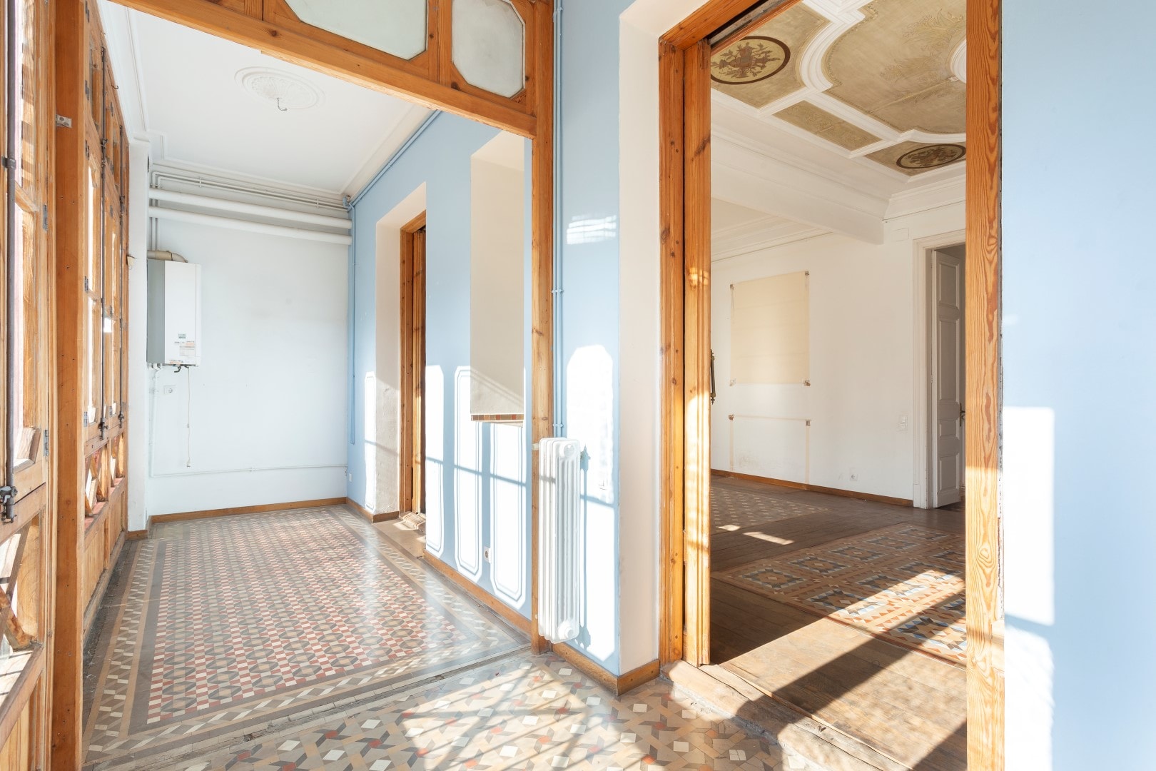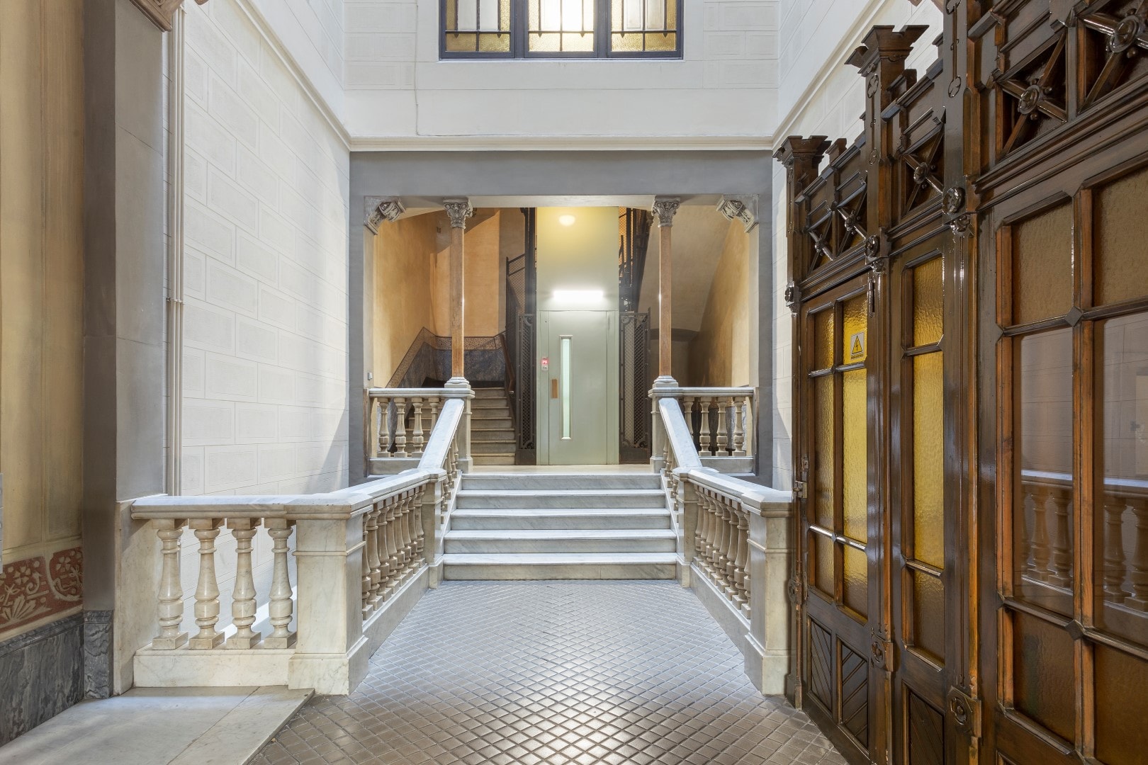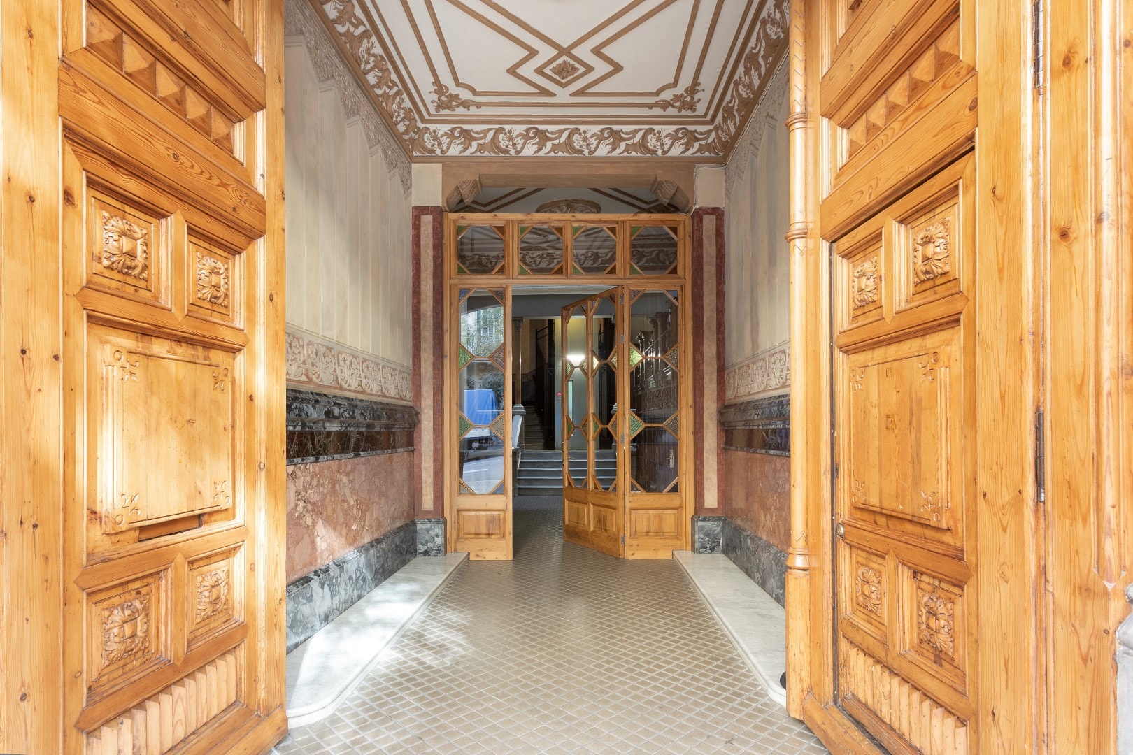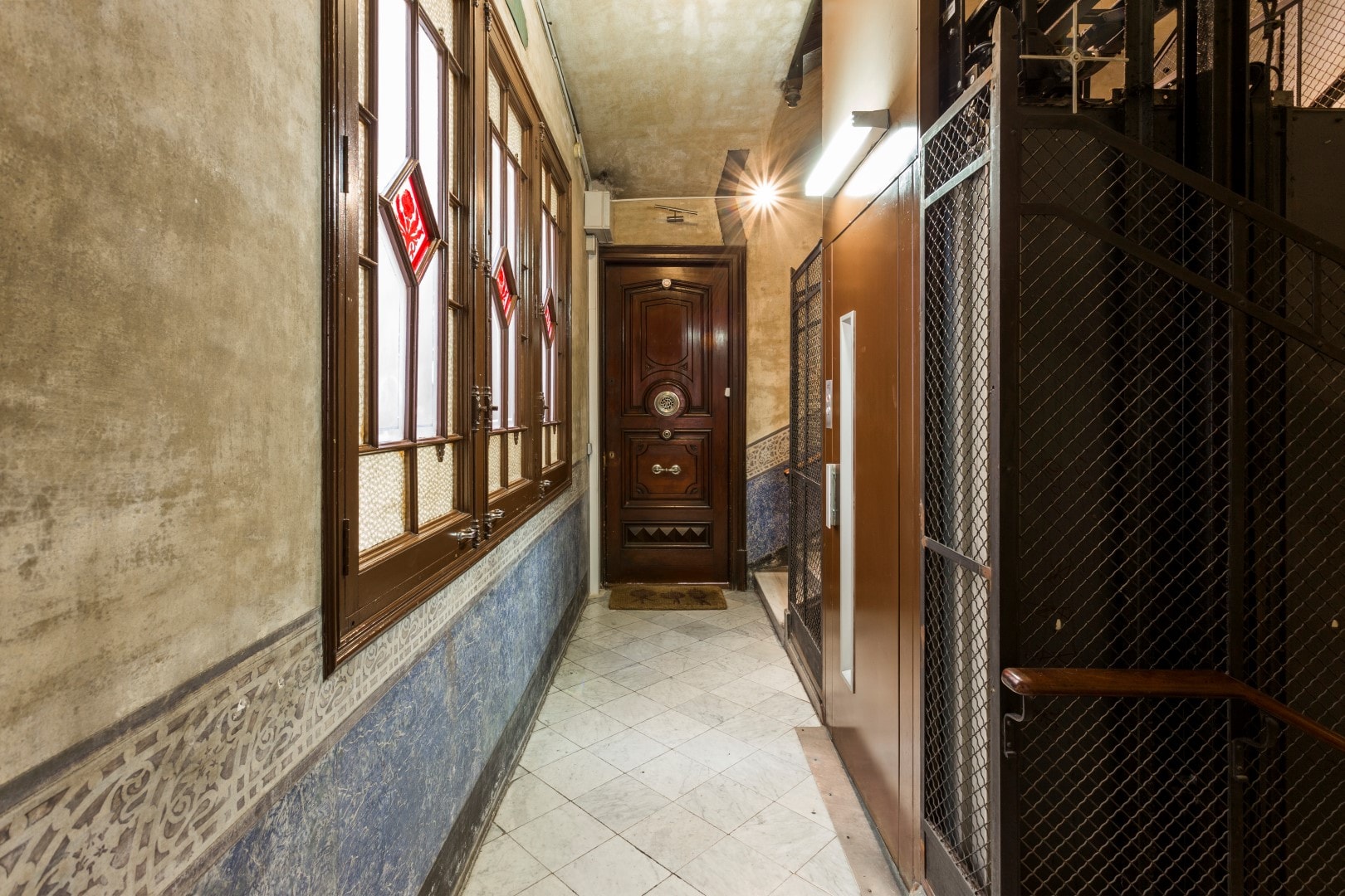 Modernist apartment in a catalogued building from 1875, located between numbers 50 and 52 of Calle Trafalgar. Its location, close to Barcelona’s old town, proves that it was one of the first buildings of the Eixample in Barcelona, just after the city centers old medieval walls were taken down. The building, which has been residential since its construction, consists of a total of seven floors, with a ground floor, a first floor, and five more.