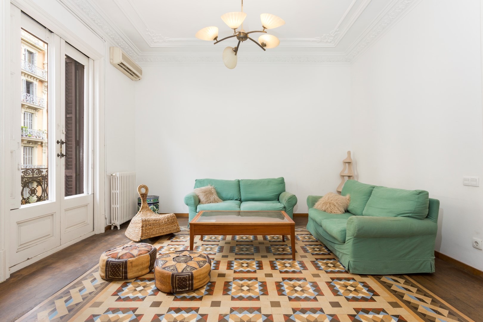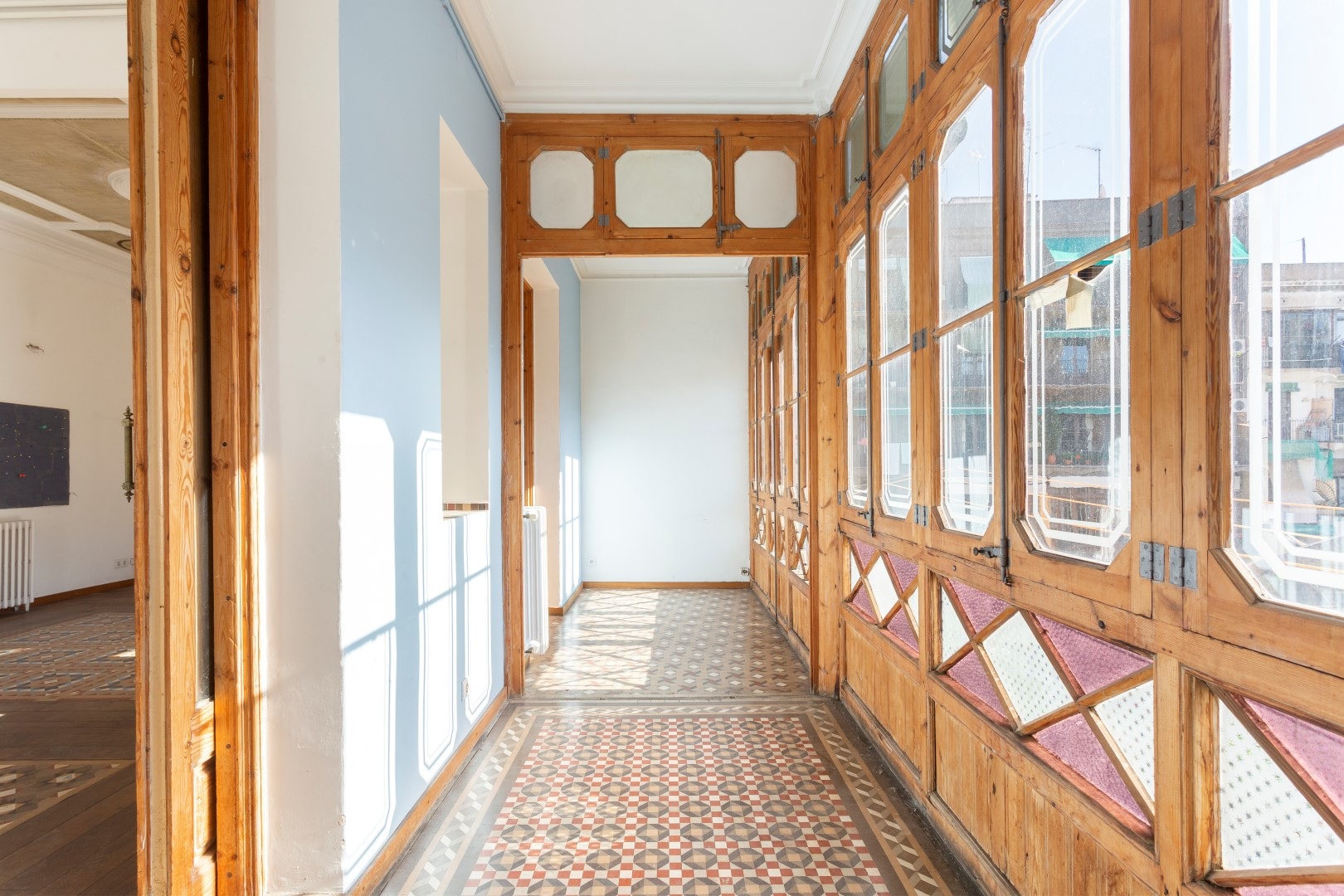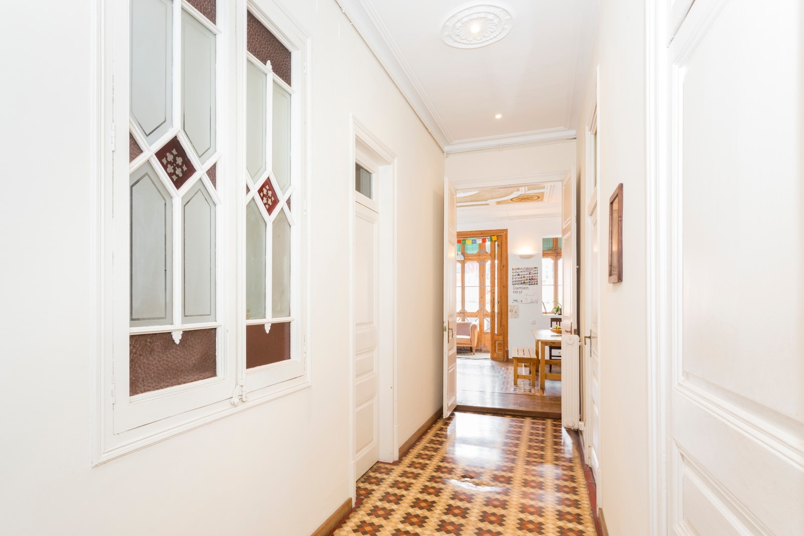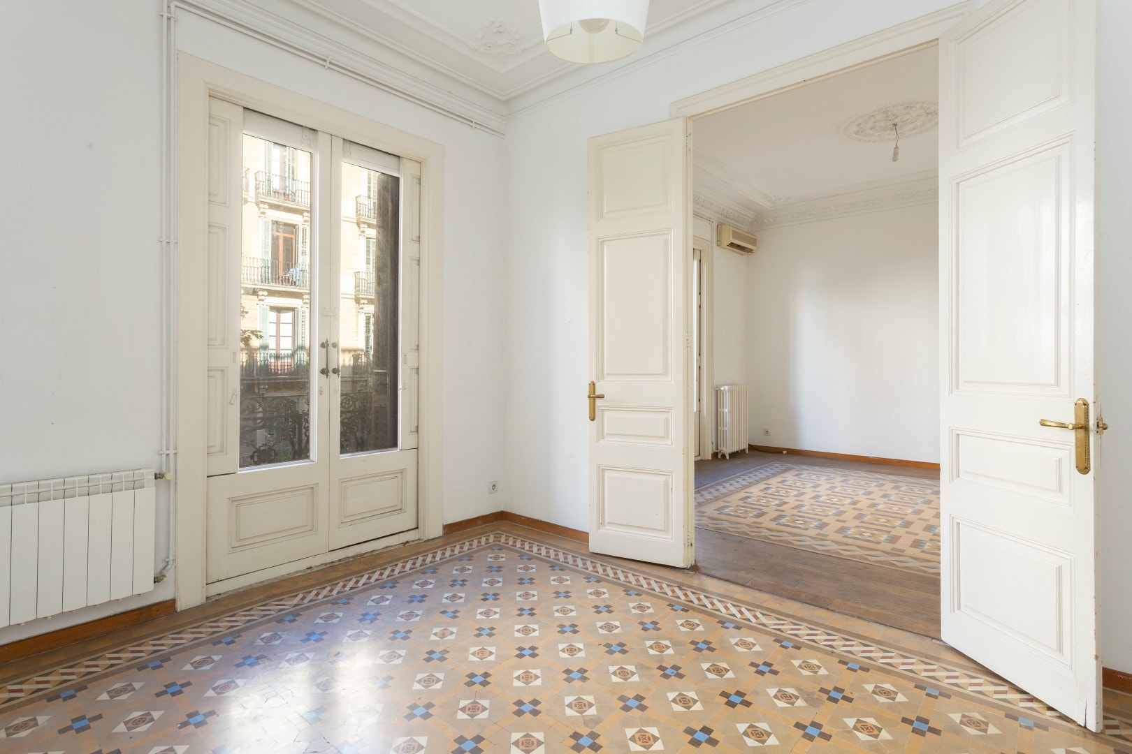 Modernist apartment in a catalogued building from 1875, located between numbers 50 and 52 of Calle Trafalgar. Its location, close to Barcelona’s old town, proves that it was one of the first buildings of the Eixample in Barcelona, just after the city centers old medieval walls were taken down. The building, which has been residential since its construction, consists of a total of seven floors, with a ground floor, a first floor, and five more.