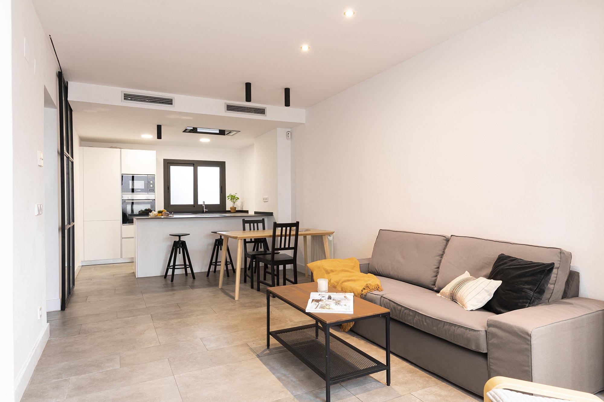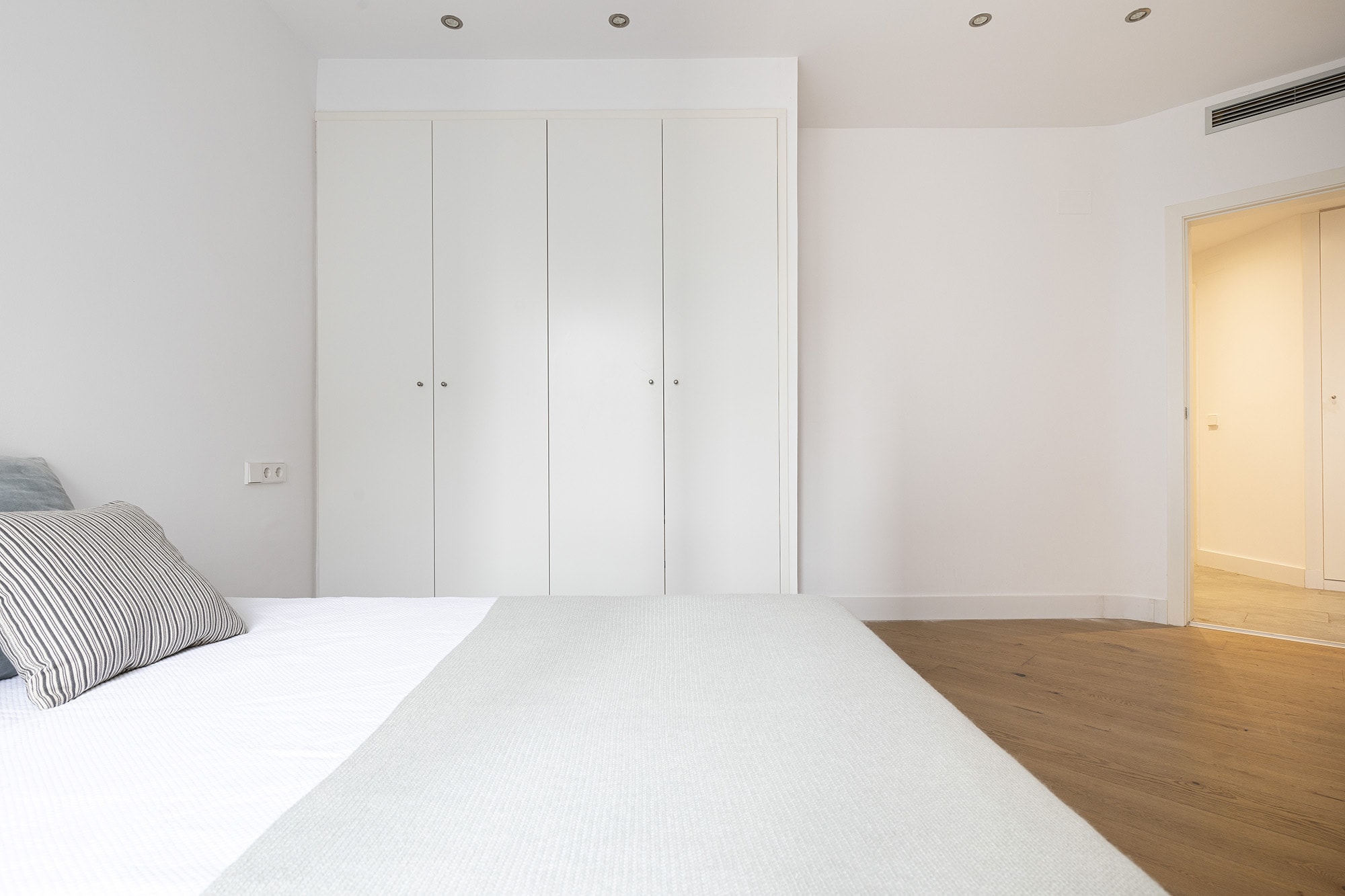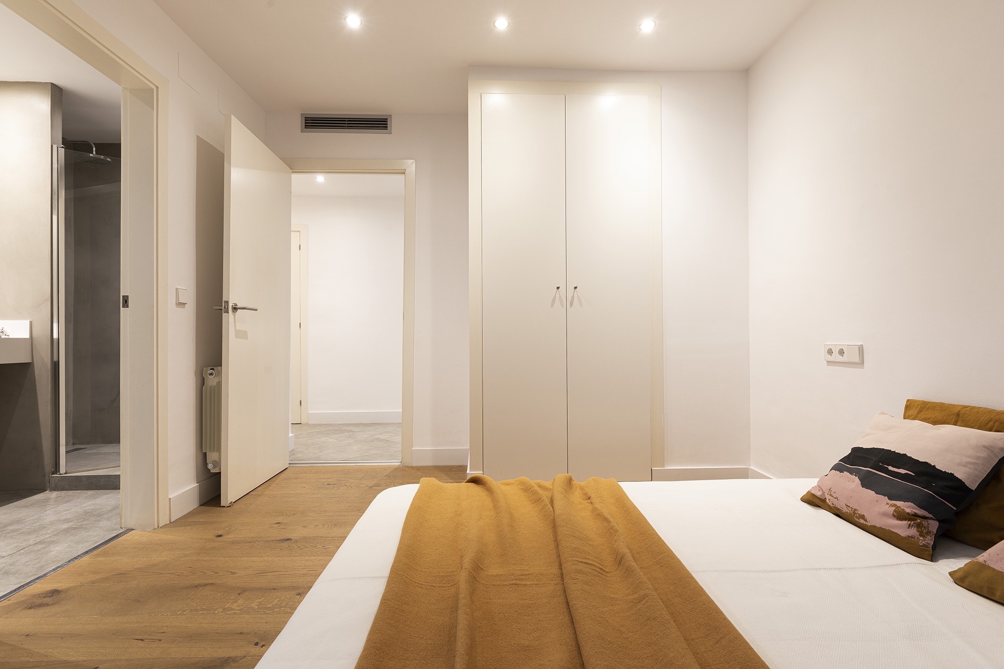 There has been used high quality finishes, such as wooden floors in the bedrooms, micro cement in the bathrooms and ceramic tiles in the rest of the apartment. The apartment offers integrated air conditioning with hot and cold air and a central heating. The kitchen is fully equipped with top of the range appliances including a fridge/freezer, built-in dishwasher, electric oven with induction hob and a microwave.