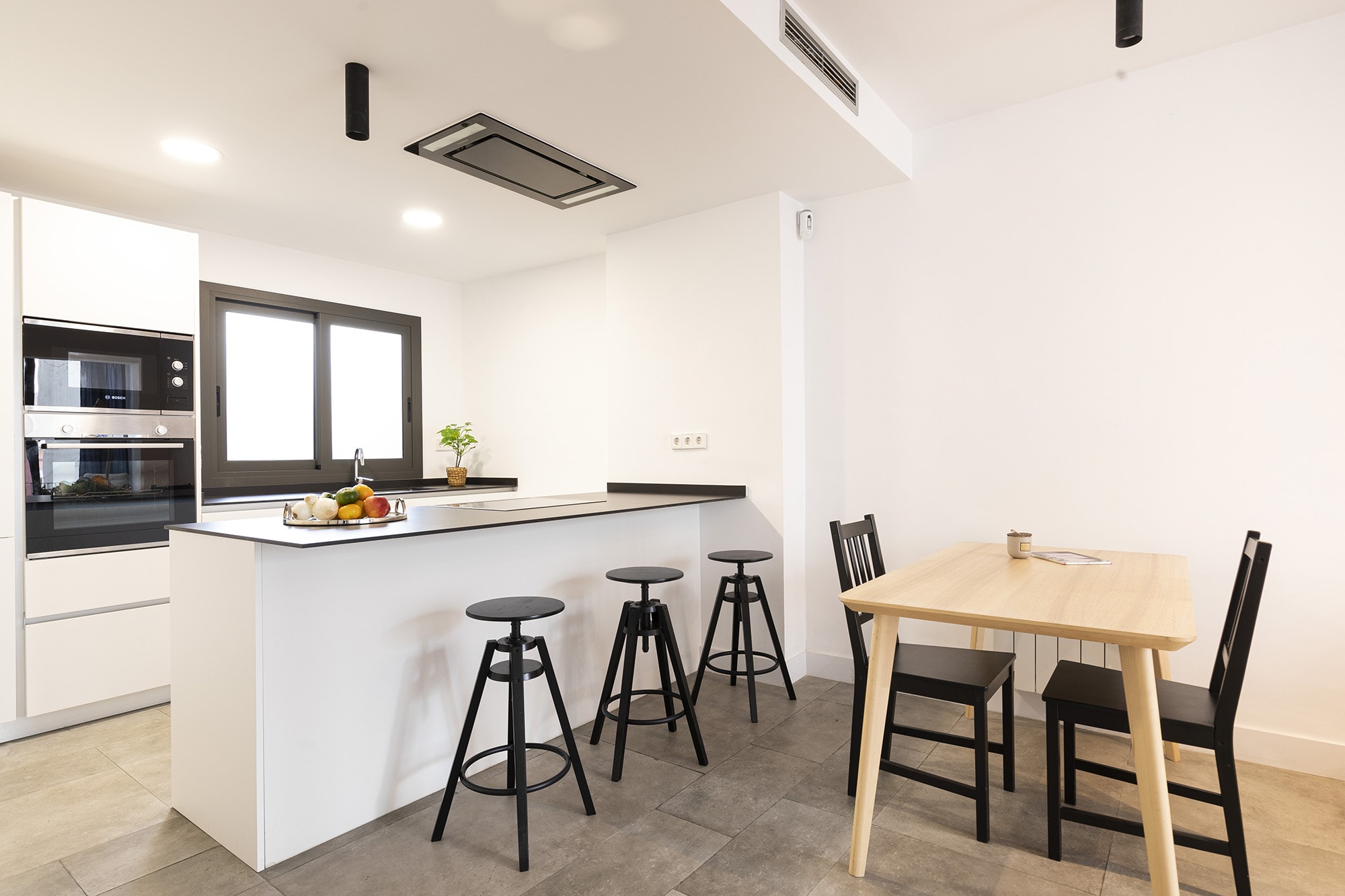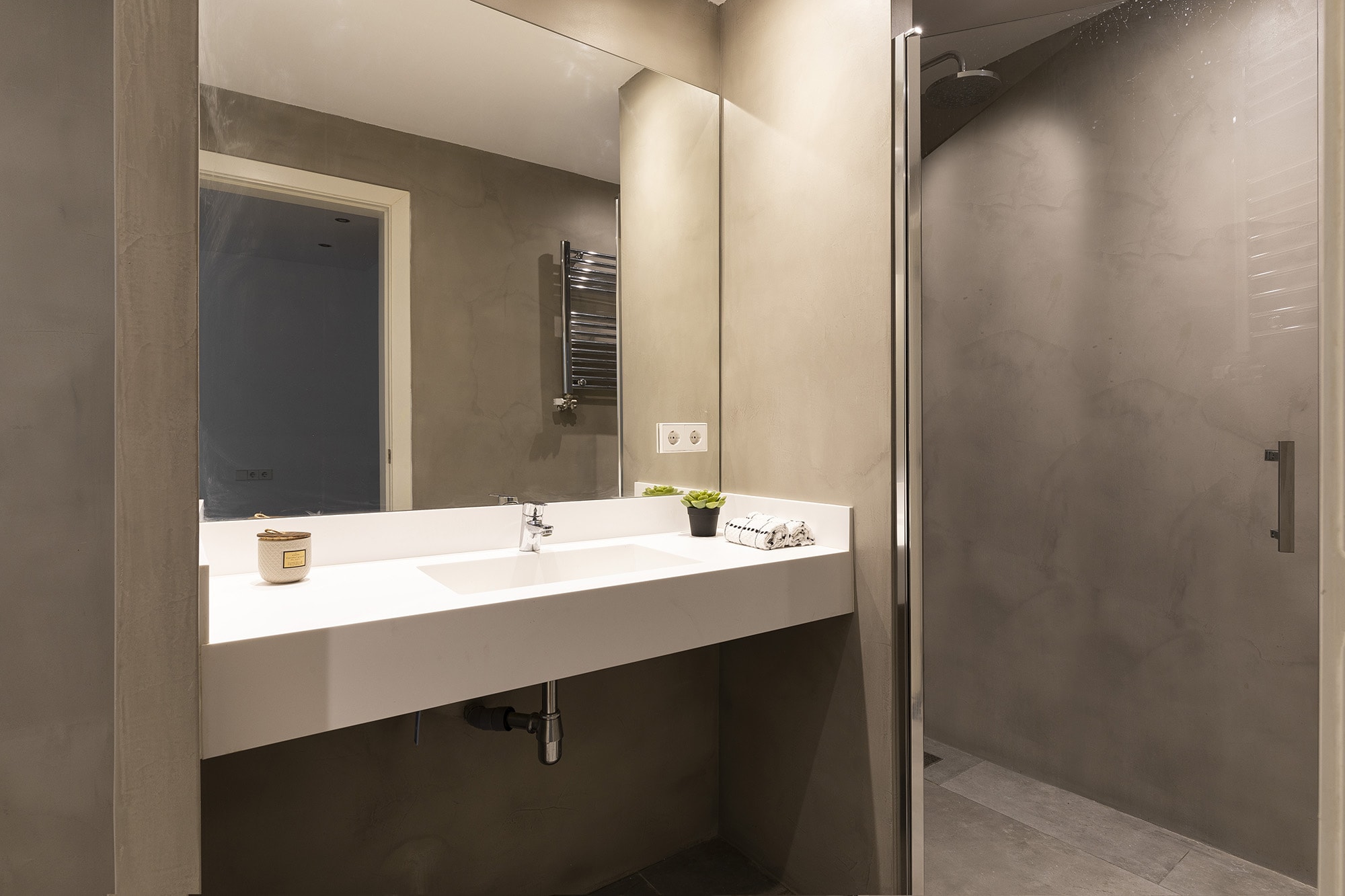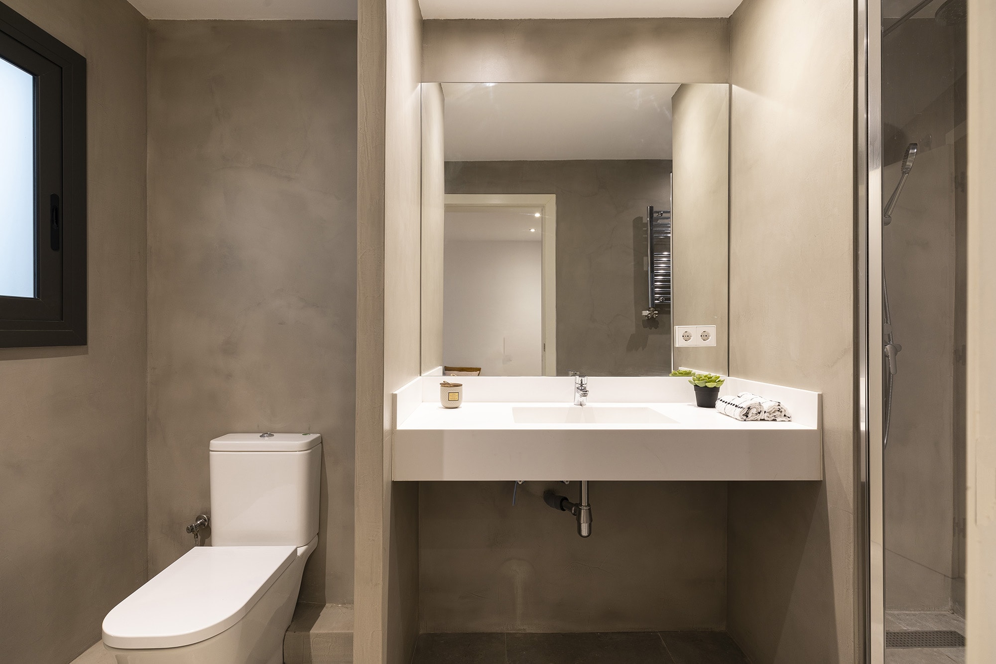 There has been used high quality finishes, such as wooden floors in the bedrooms, micro cement in the bathrooms and ceramic tiles in the rest of the apartment. The apartment offers integrated air conditioning with hot and cold air and a central heating. The kitchen is fully equipped with top of the range appliances including a fridge/freezer, built-in dishwasher, electric oven with induction hob and a microwave.