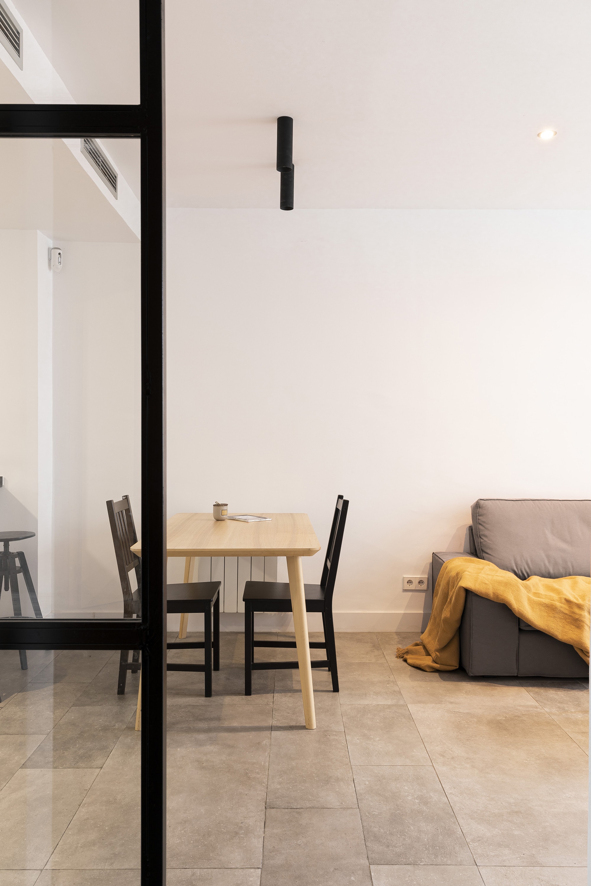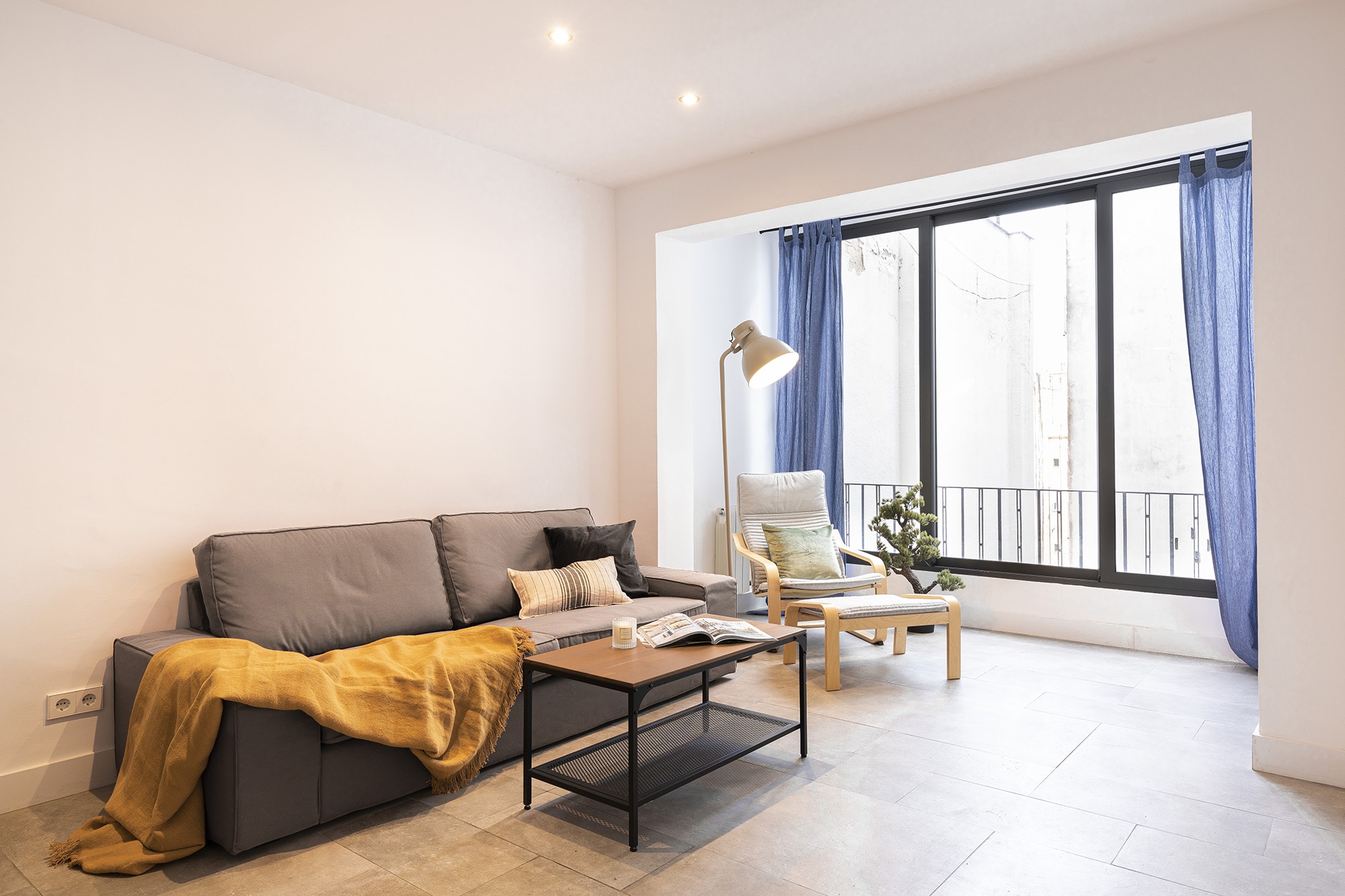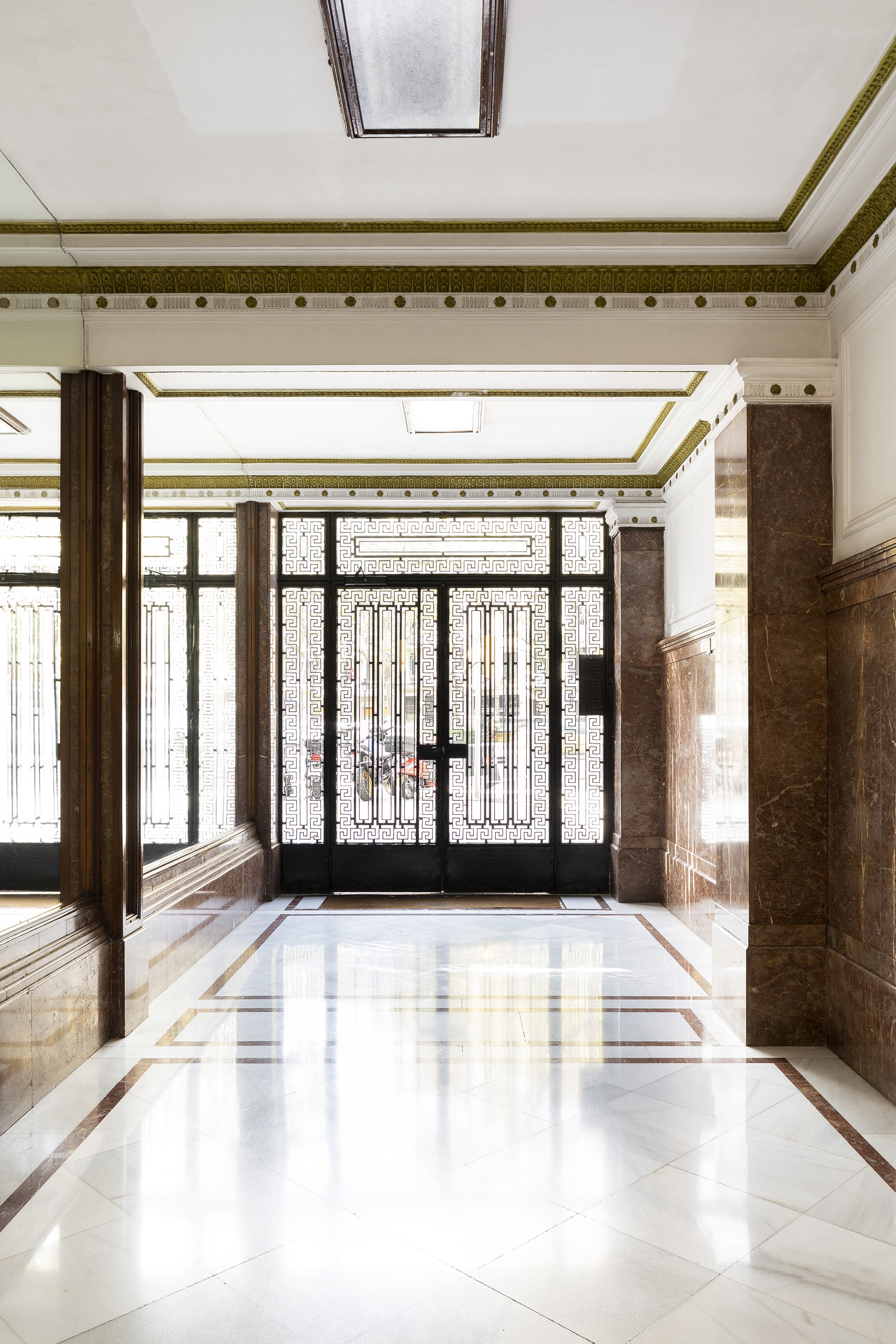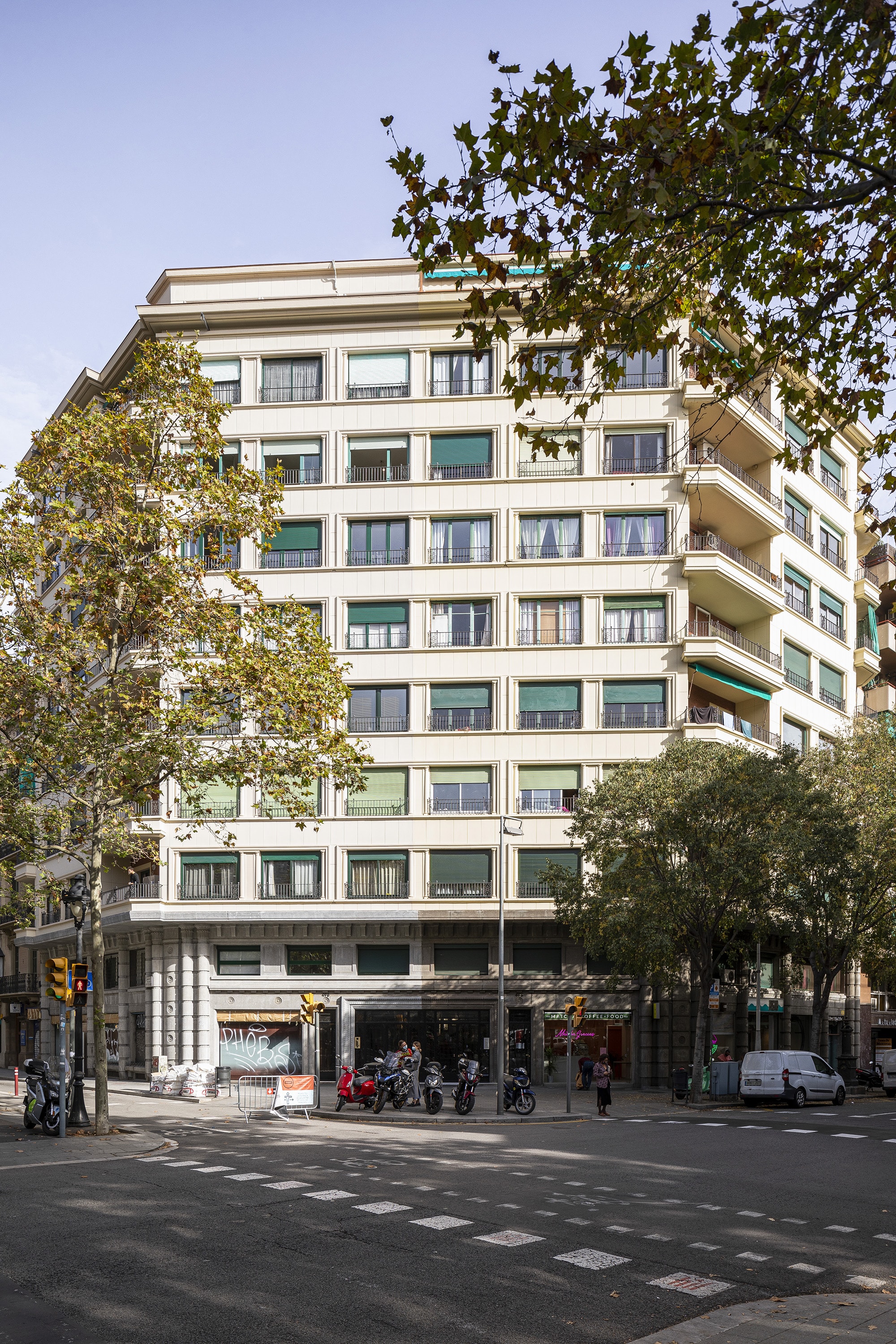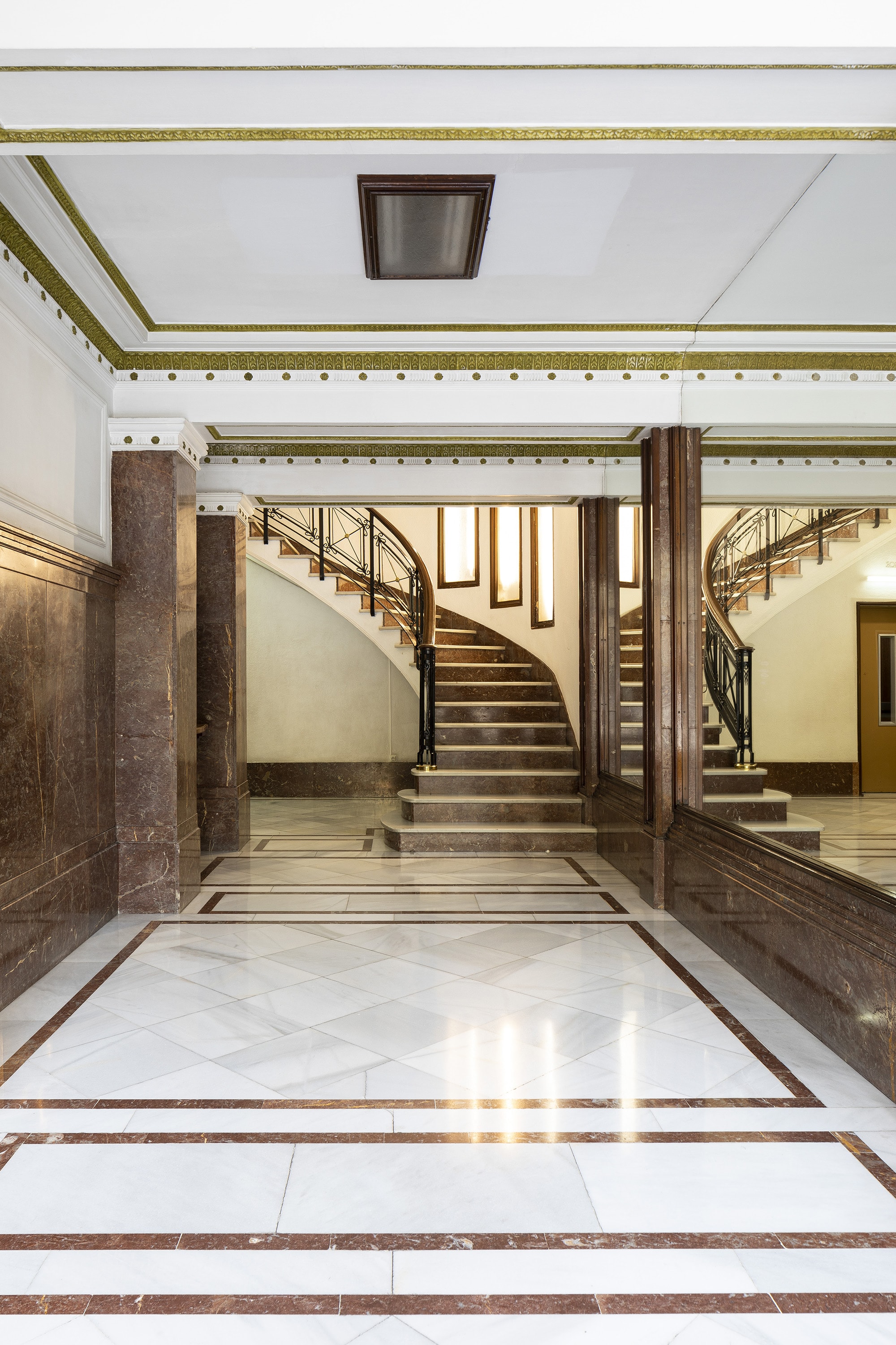 The apartment is on the fifth floor of a historic Barcelona building with a fully renovated entrance, lift and concierge service.